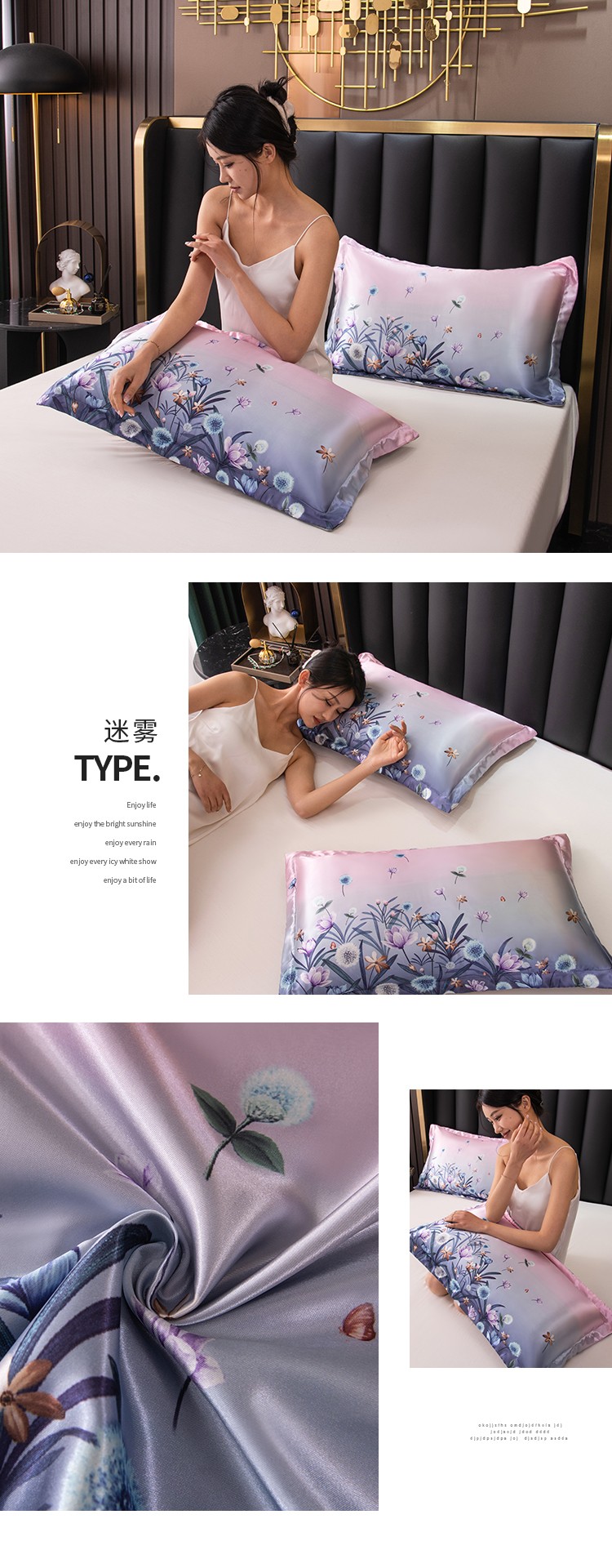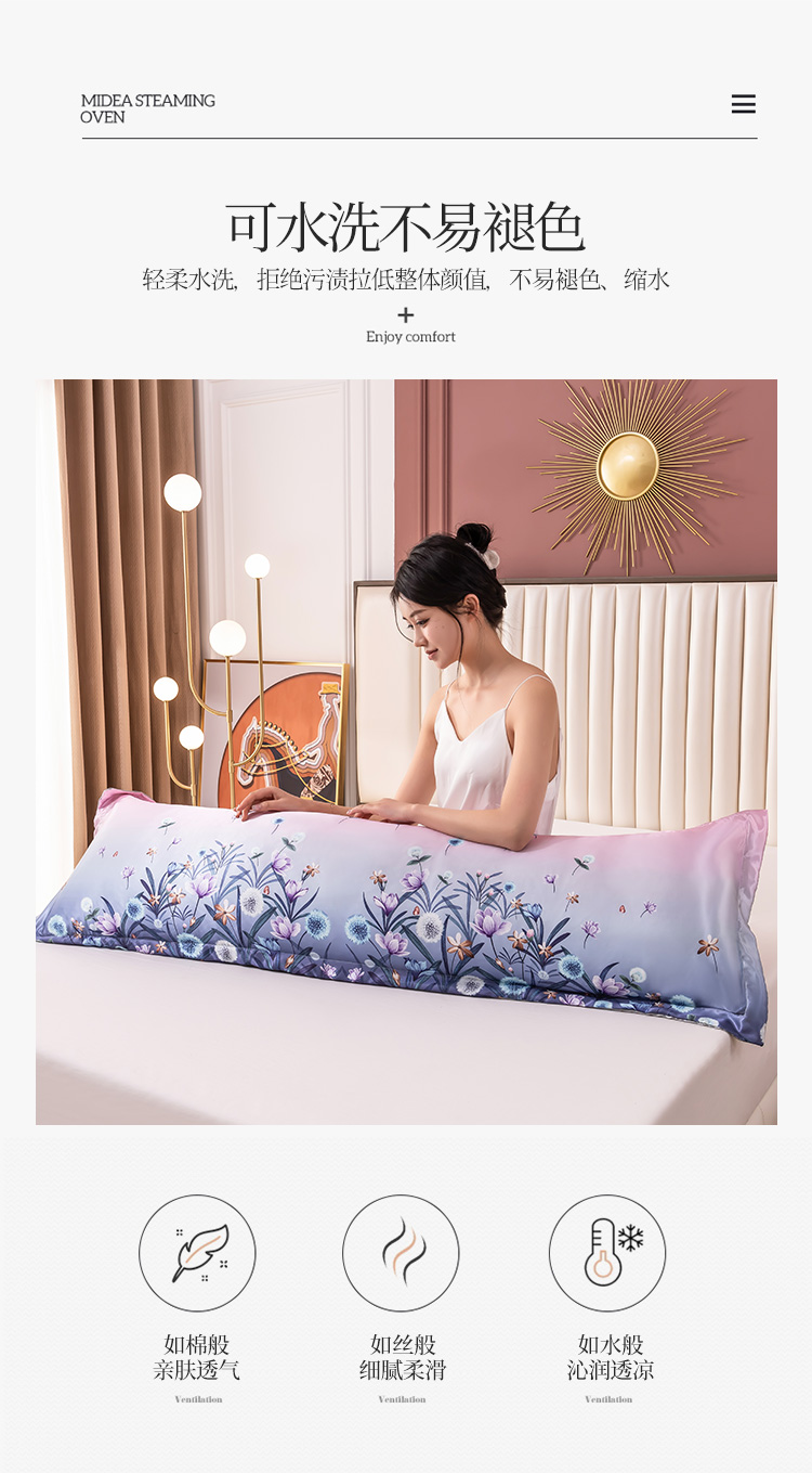商品名称:圣比熊新款大版双人可水洗冰丝夏季单人枕头套丝滑宿舍枕芯套迷雾