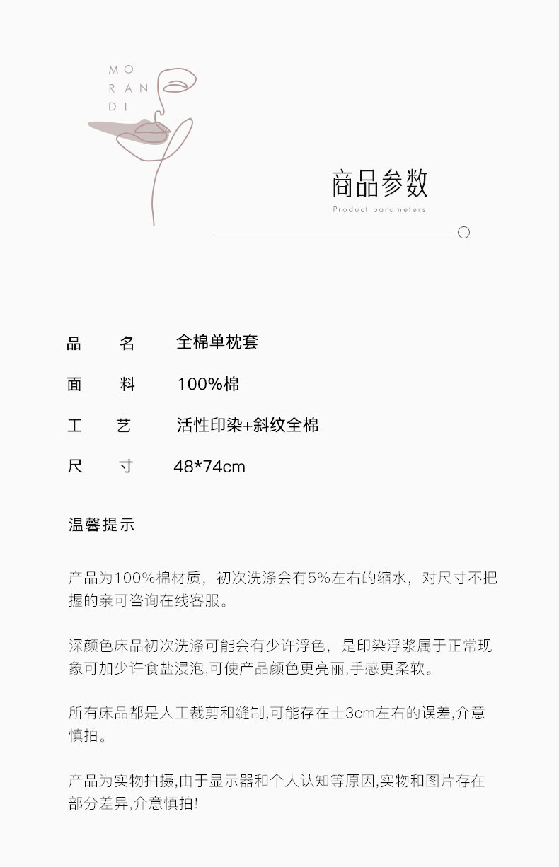 (总)金鑫汇家纺 2026新款全棉印花小清新单枕套系列-可露丽,海盐可露丽,浅咖可露丽,浅绿可露丽,月下花影-桔,月下花影-蓝,月下花影-绿
