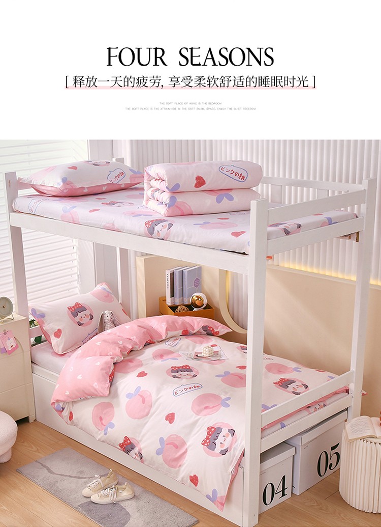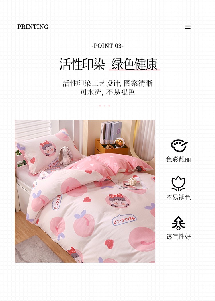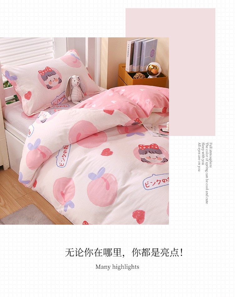 商品名称:拾物记 2023新款喷气全棉卡通小清新系列学生三件套 白桃公主
