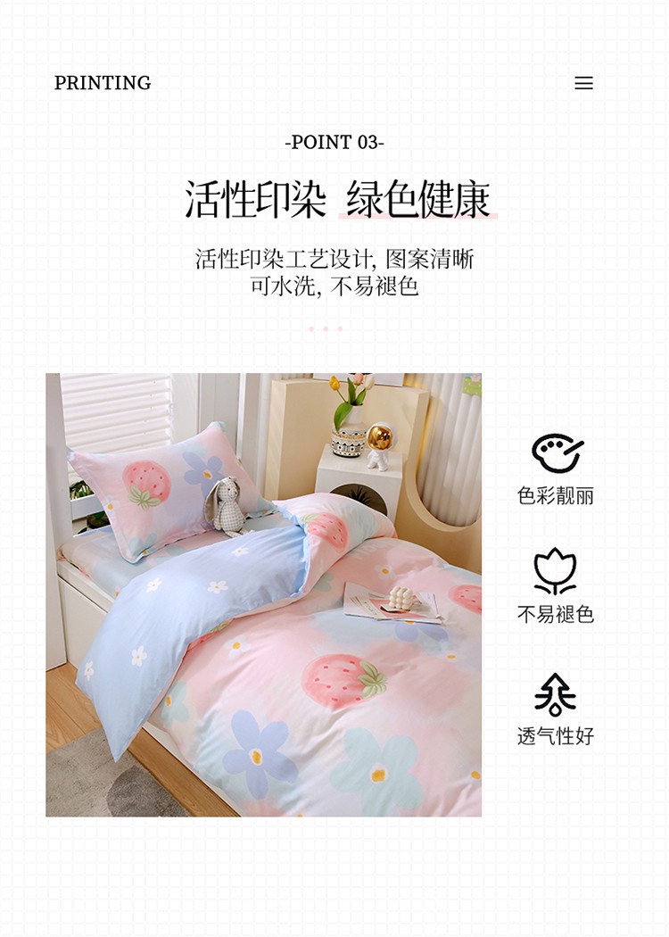 商品名称:拾物记 2023新款喷气全棉卡通小清新系列学生三件套 云上花园