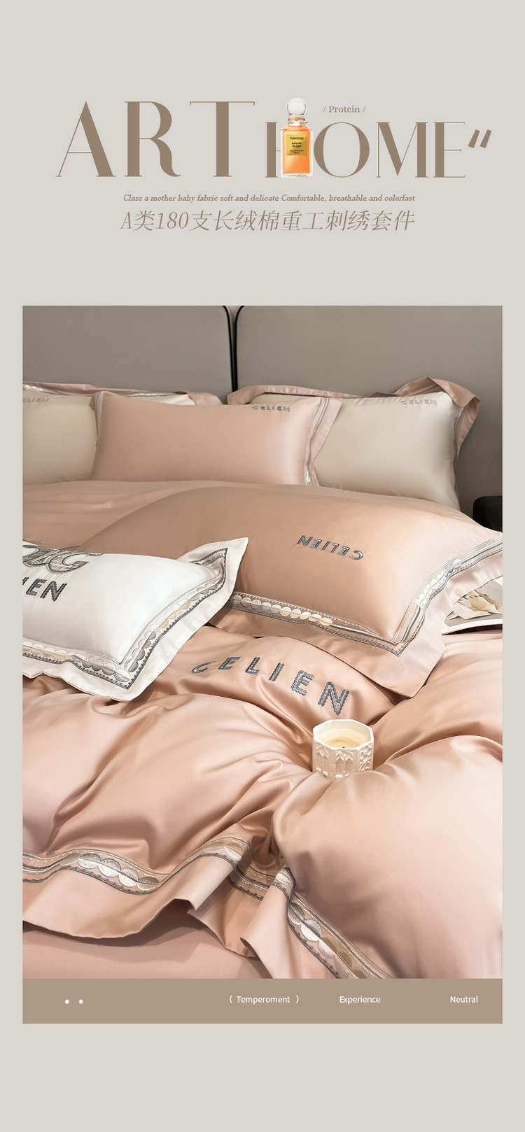 (总)618家纺 2026新款A类100支全棉纯棉毛巾绣花四件套-泰迪系列,泰迪-米咖,泰迪-桃粉