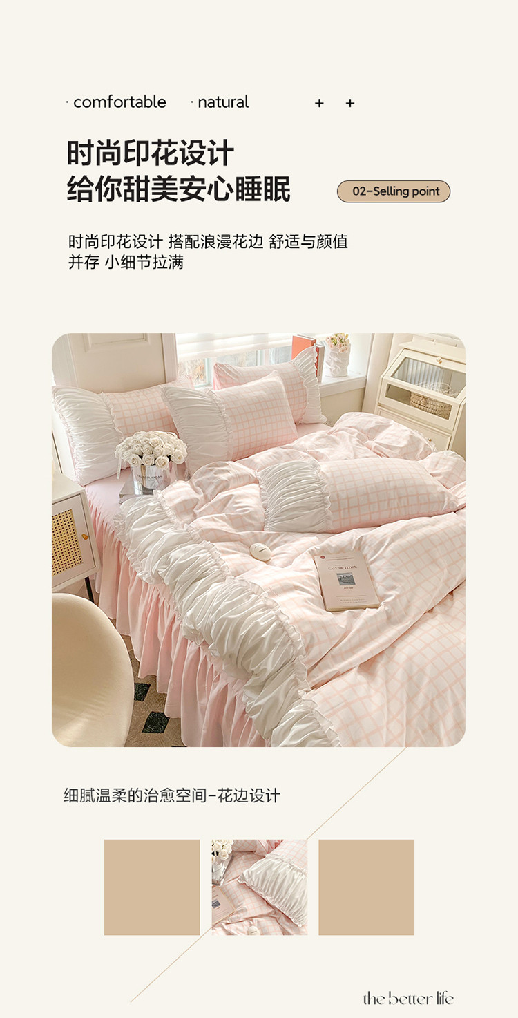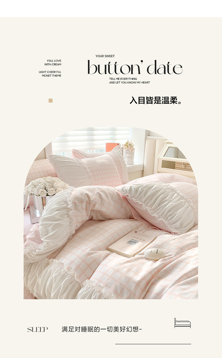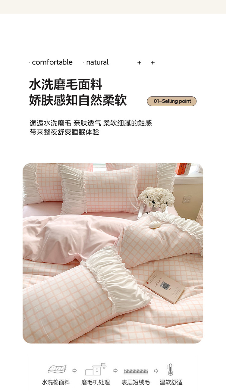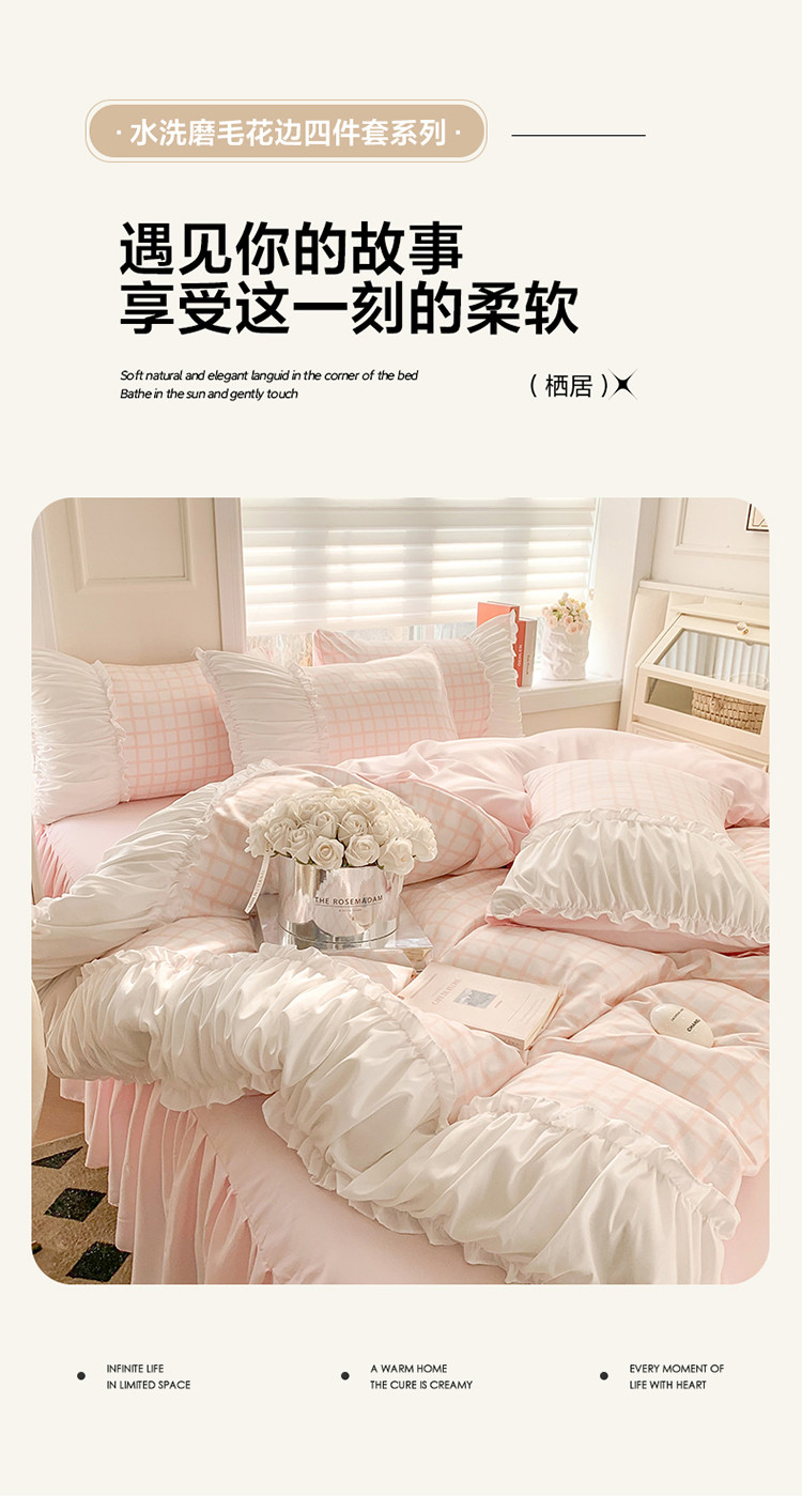 当前位置: 91家纺网 > 商品网购 > 床品套件 > 四件套 > 普通磨毛四件套 > 逸尚阁 2023新款水洗磨毛花边四件套 格娜-仙女粉