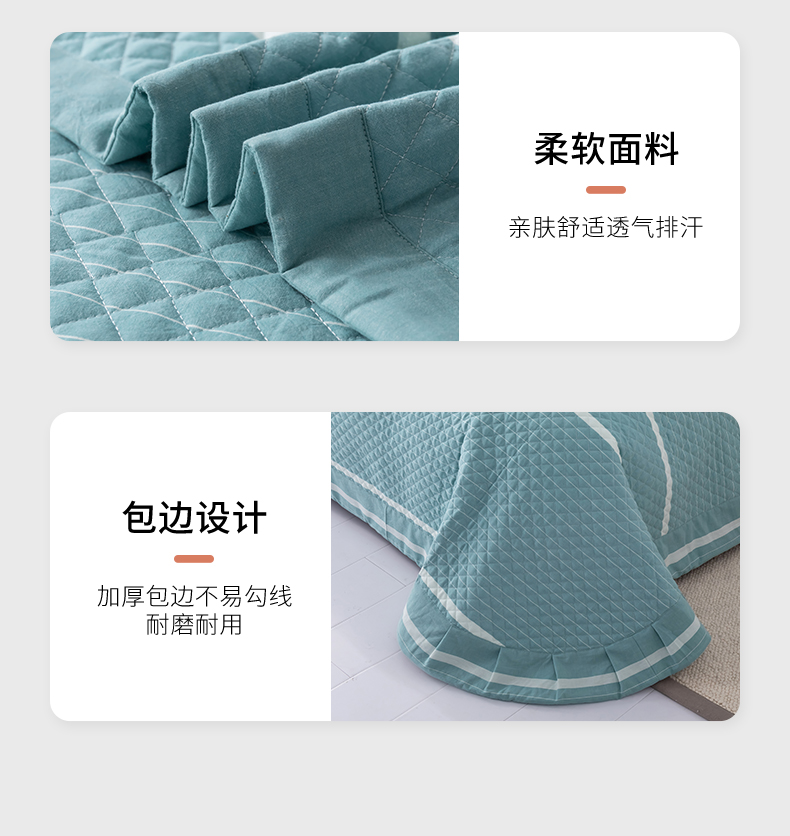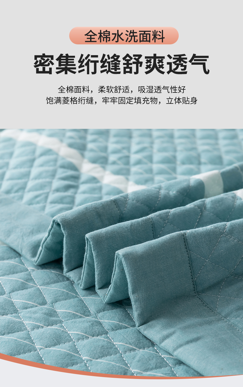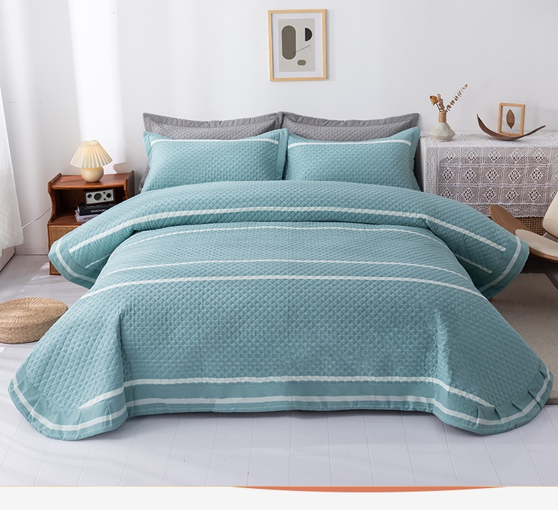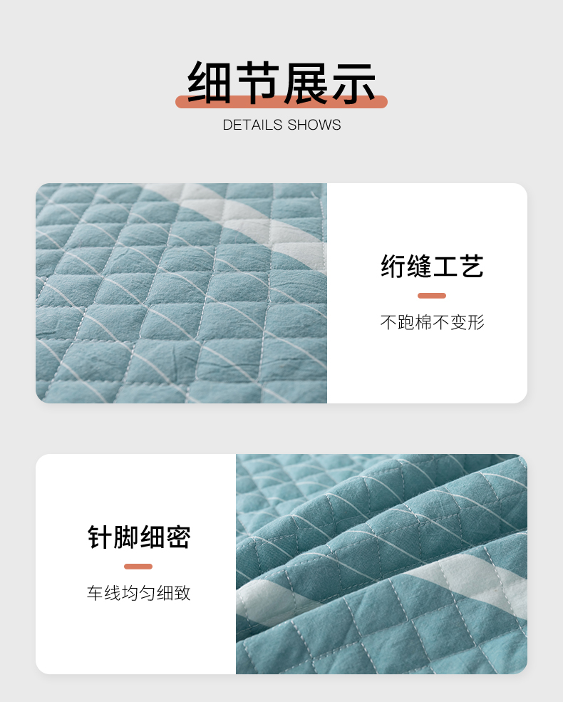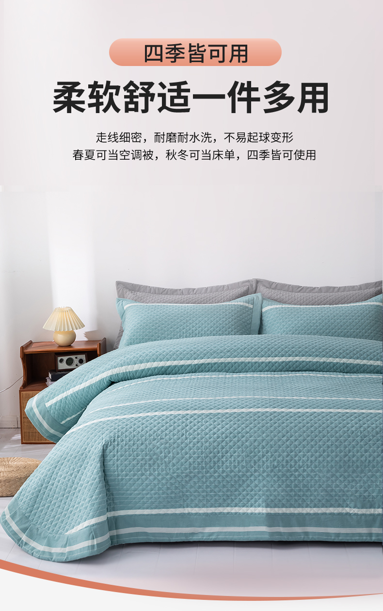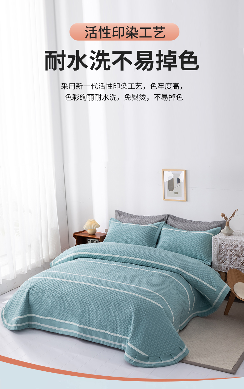 商品名称:优乐家纺 2025新款全棉床盖三件套水洗纯棉夹棉绗缝加厚铺盖 青春绿