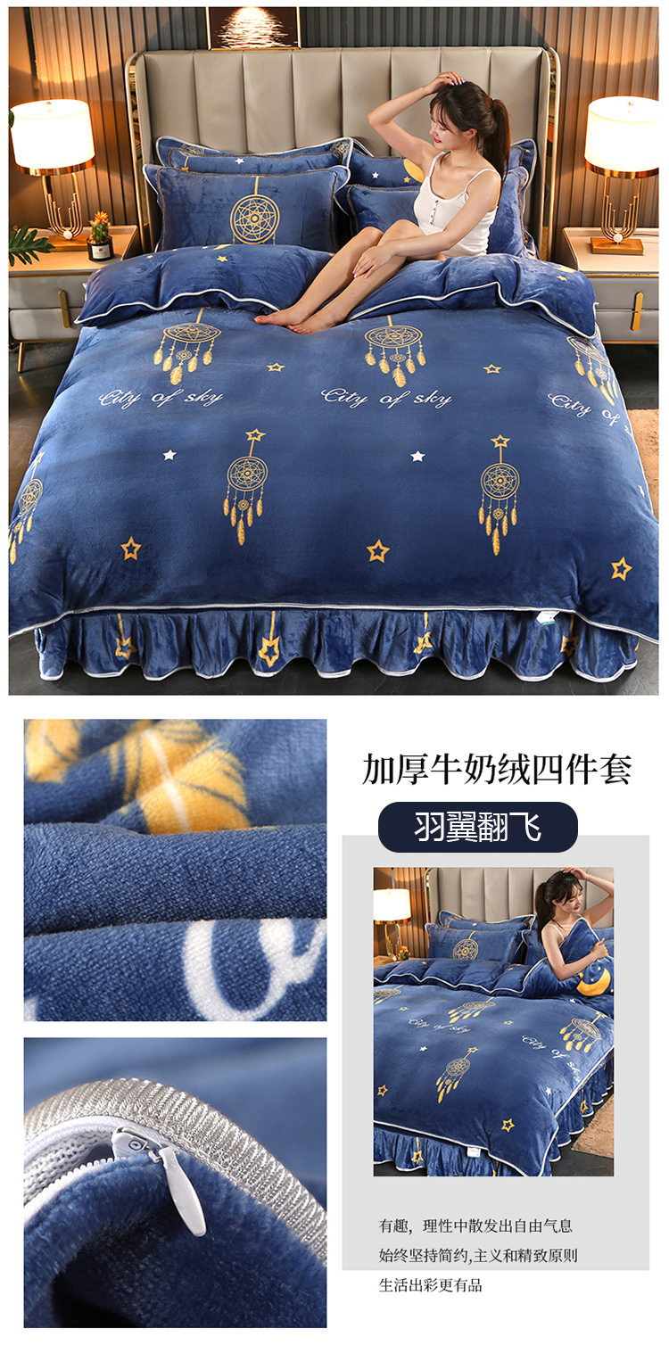 商品名称:爱上家居 2023新款加厚牛奶金貂绒四件套 羽翼翻飞