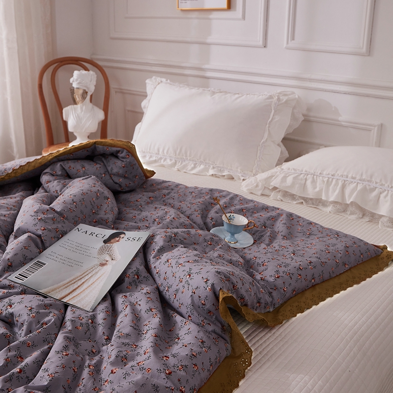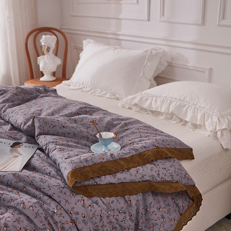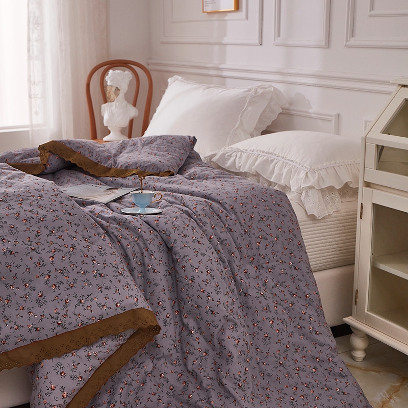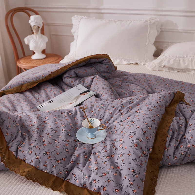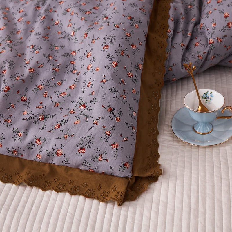 上喜 热卖全棉水洗棉印花花边一体被 繁花似锦