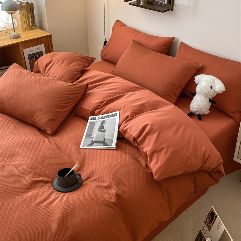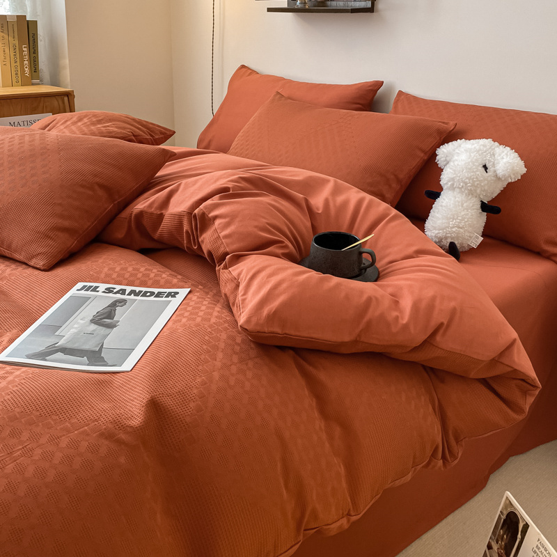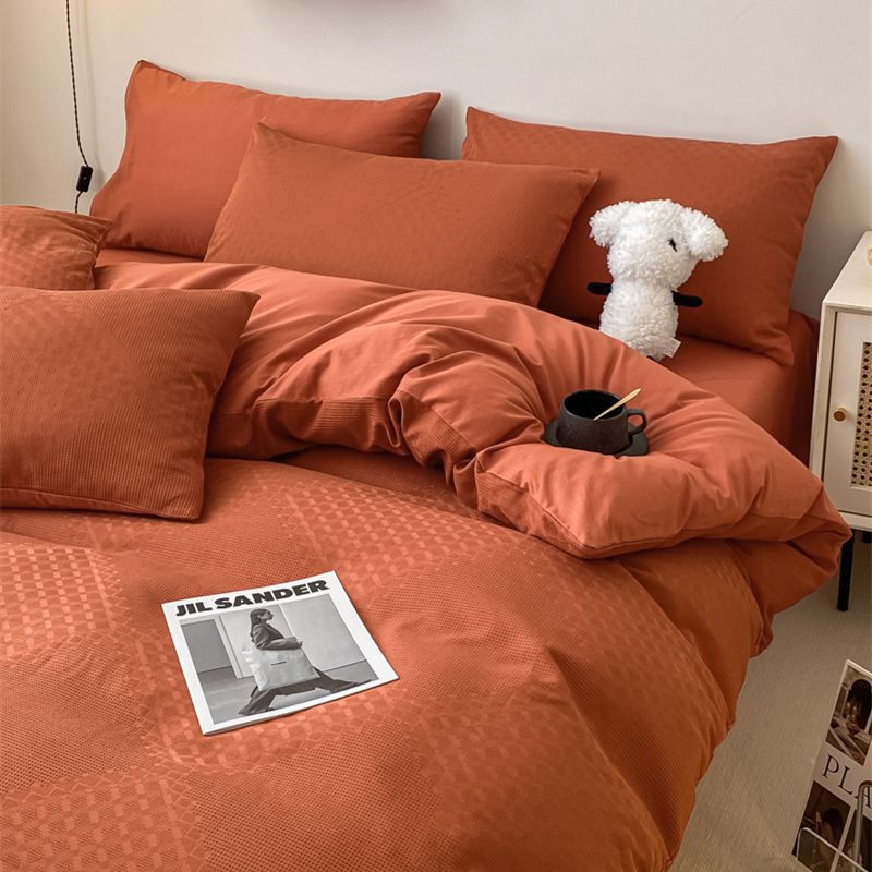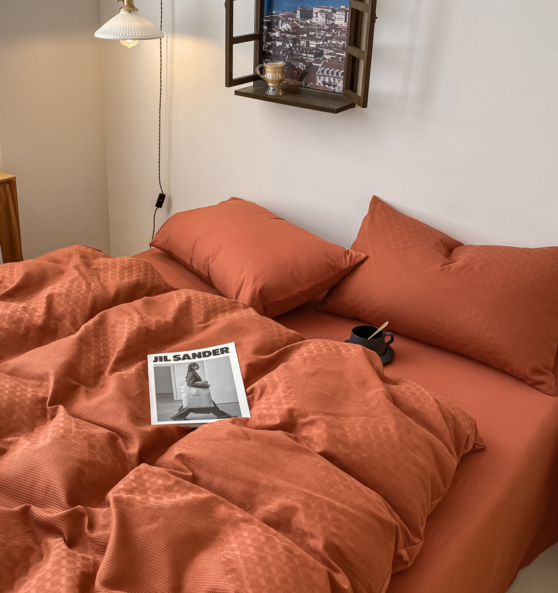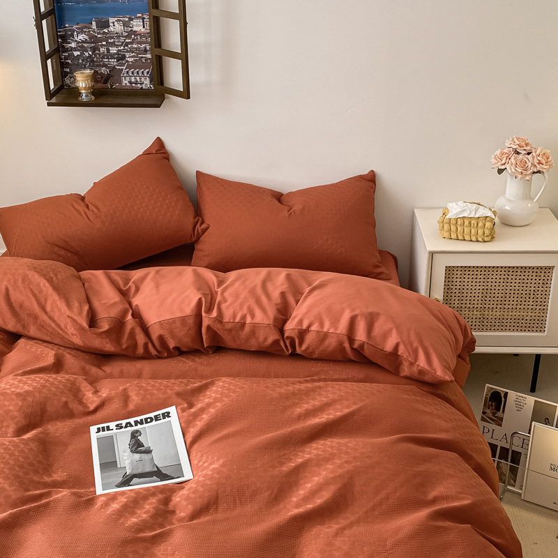金丝鸟 2023新款简约舒适华夫格四件套 简约卡其格红
