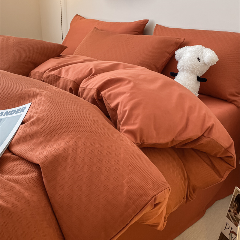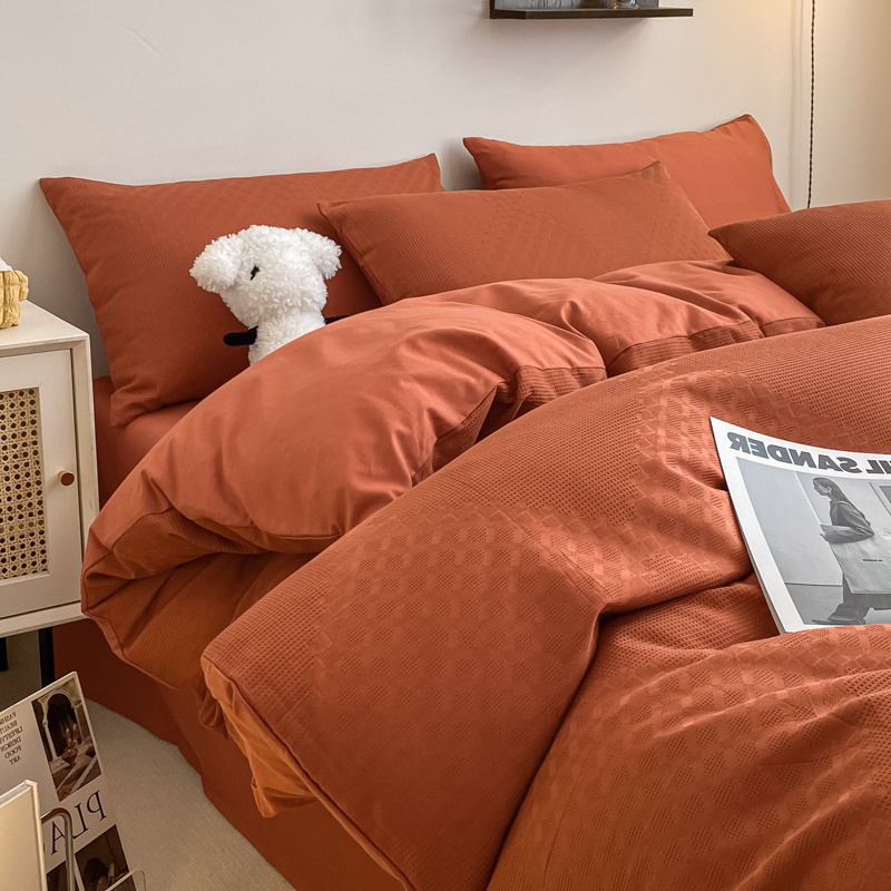 商品名称:金丝鸟 2023新款简约舒适华夫格四件套 简约卡其格红