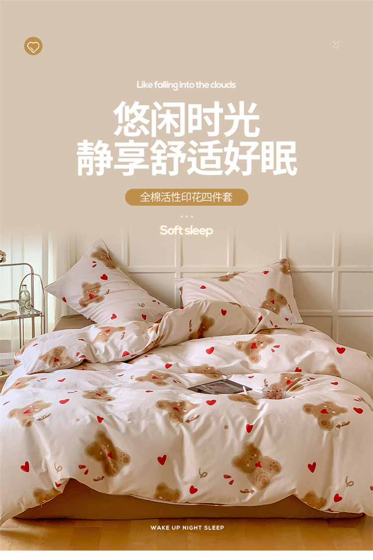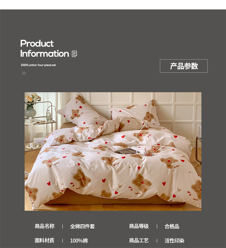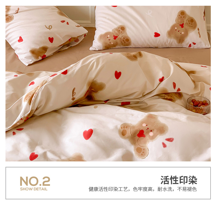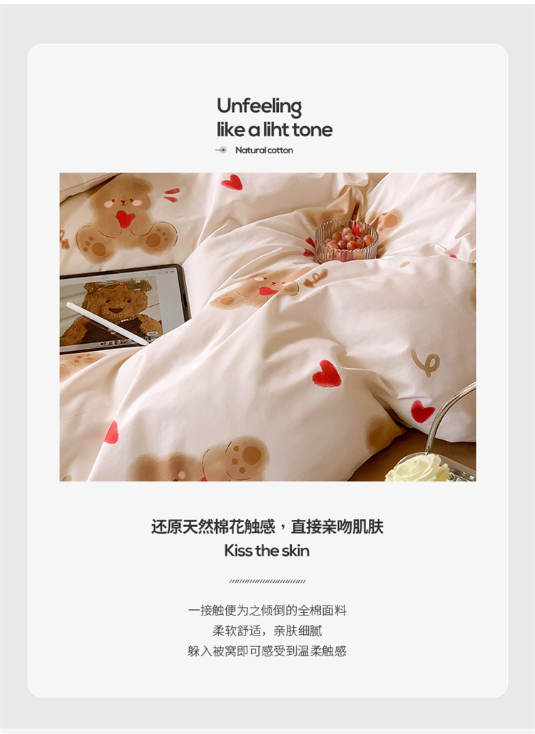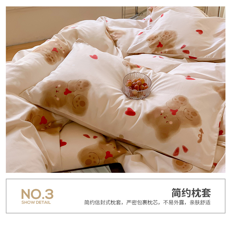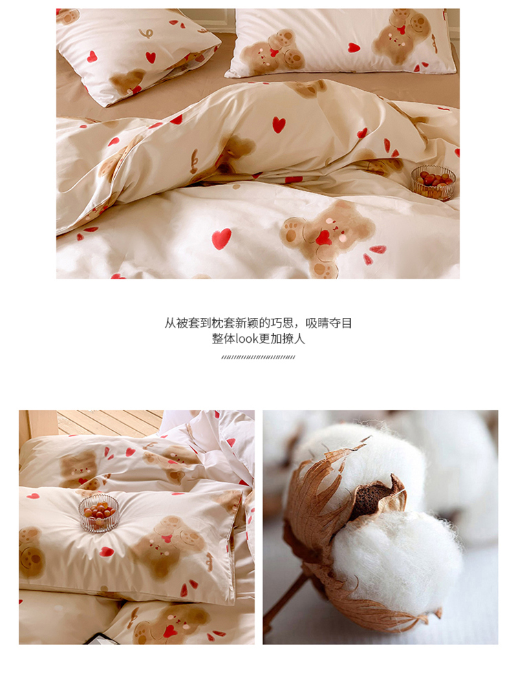 商品名称:窝米2023新款13370全棉四件套卡通简约款 恋爱熊