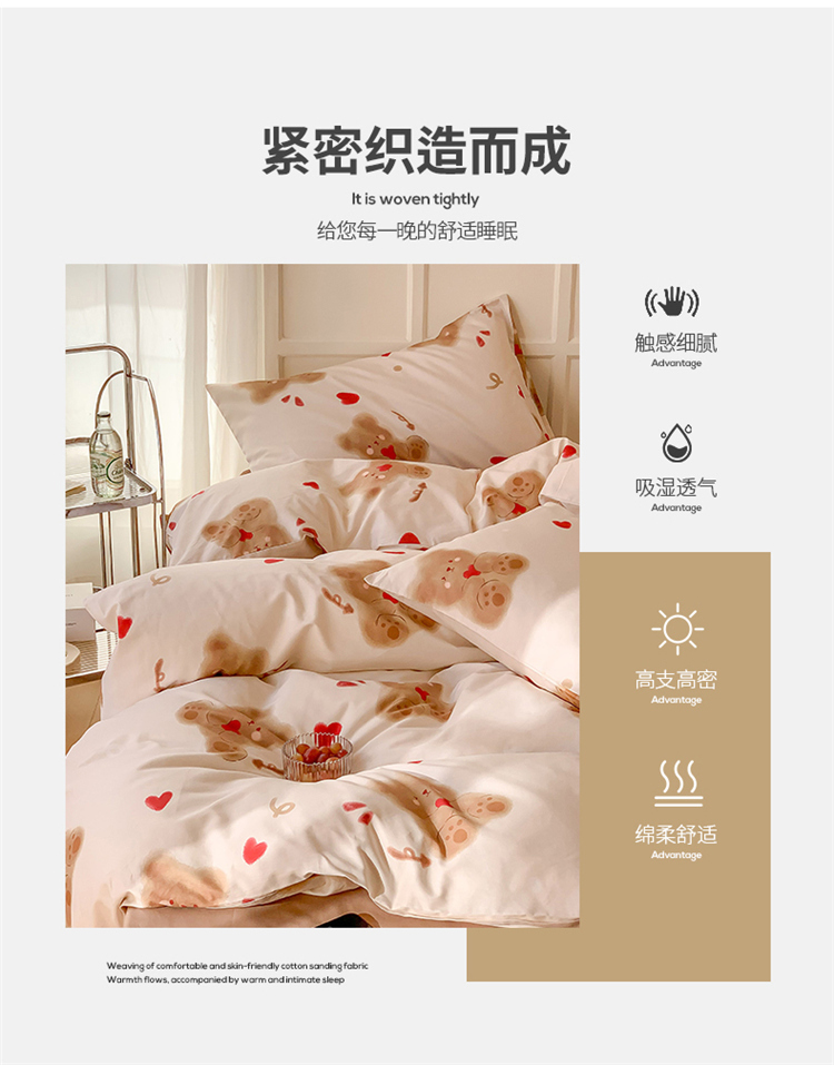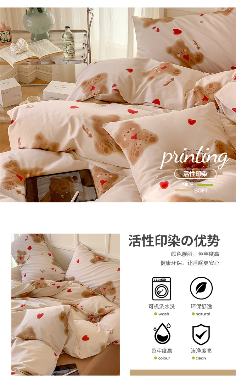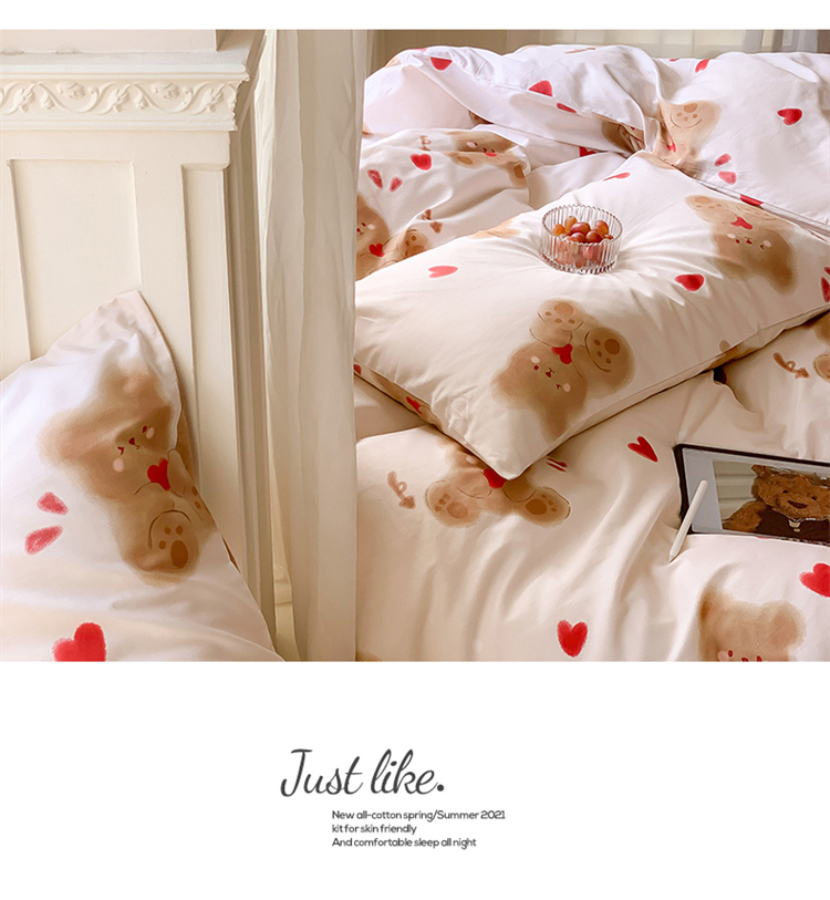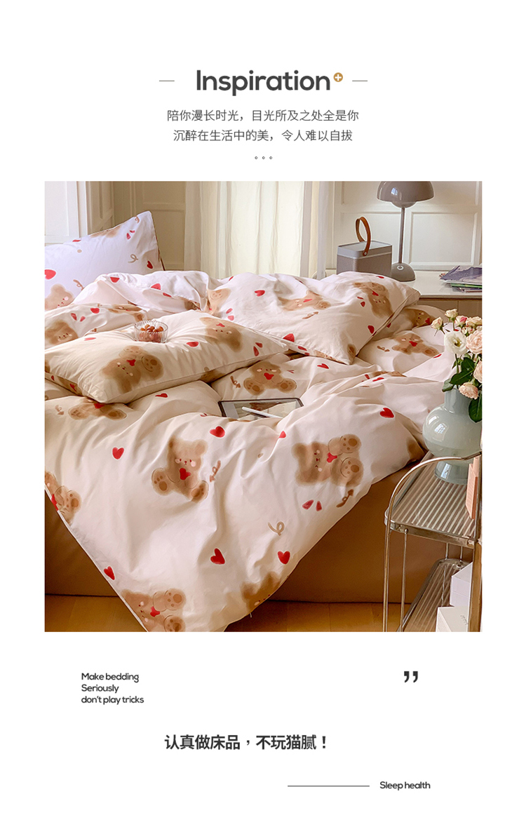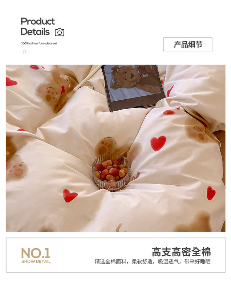 商品名称:窝米2023新款13370全棉四件套卡通简约款 恋爱熊