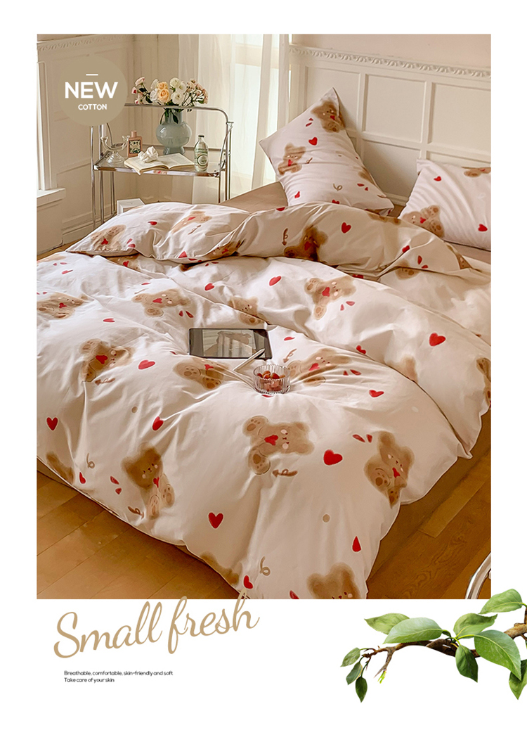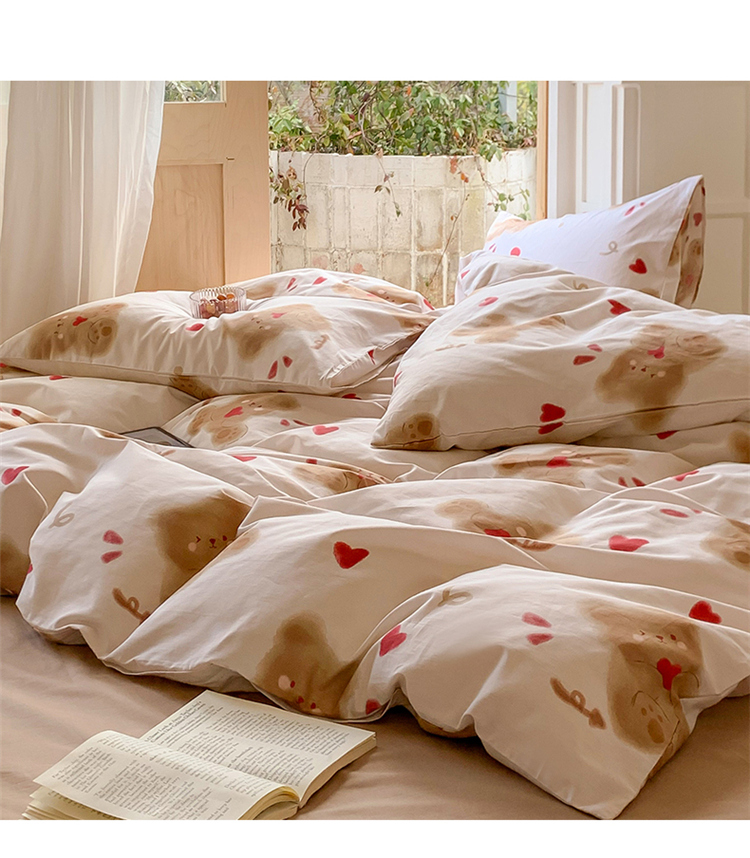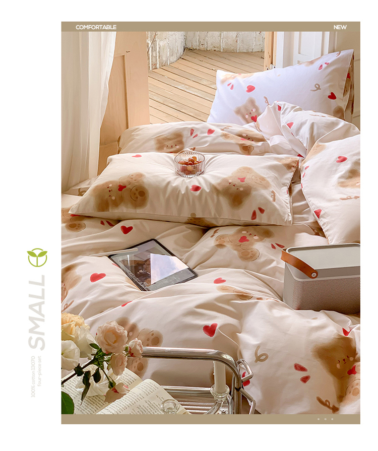 窝米2023新款13370全棉四件套卡通简约款 恋爱熊