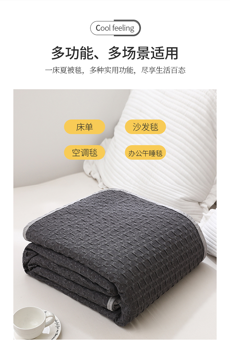 商品名称:琪琪阁2023新款华夫格针织提花亲肤舒适多功能凉感夏被 绅士灰