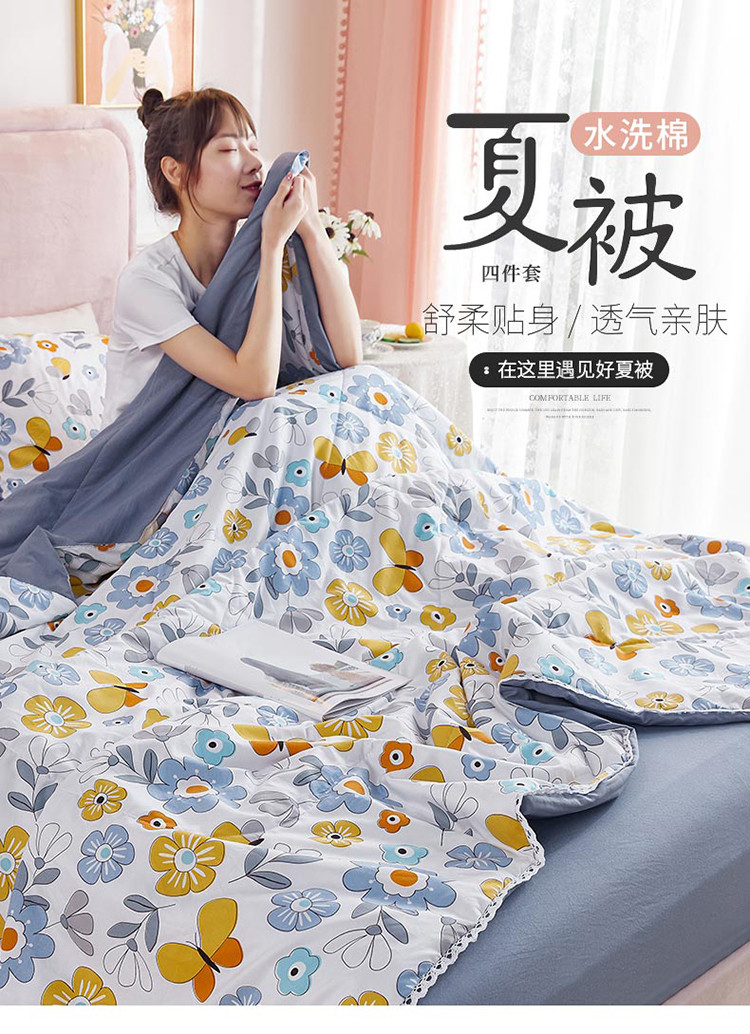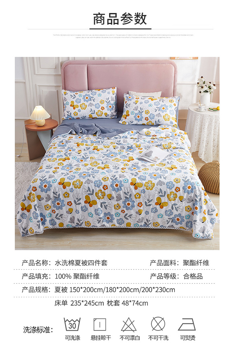 商品名称:羋多 2024新款小清新花边水洗棉夏被夏被四件套花海