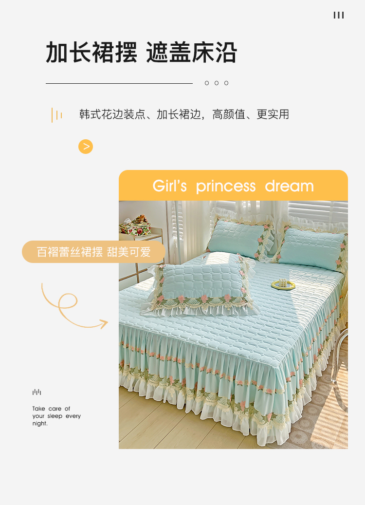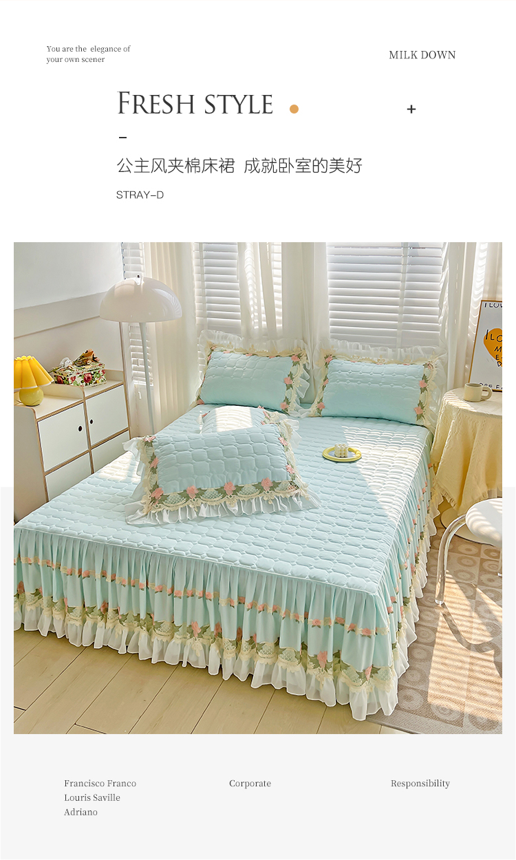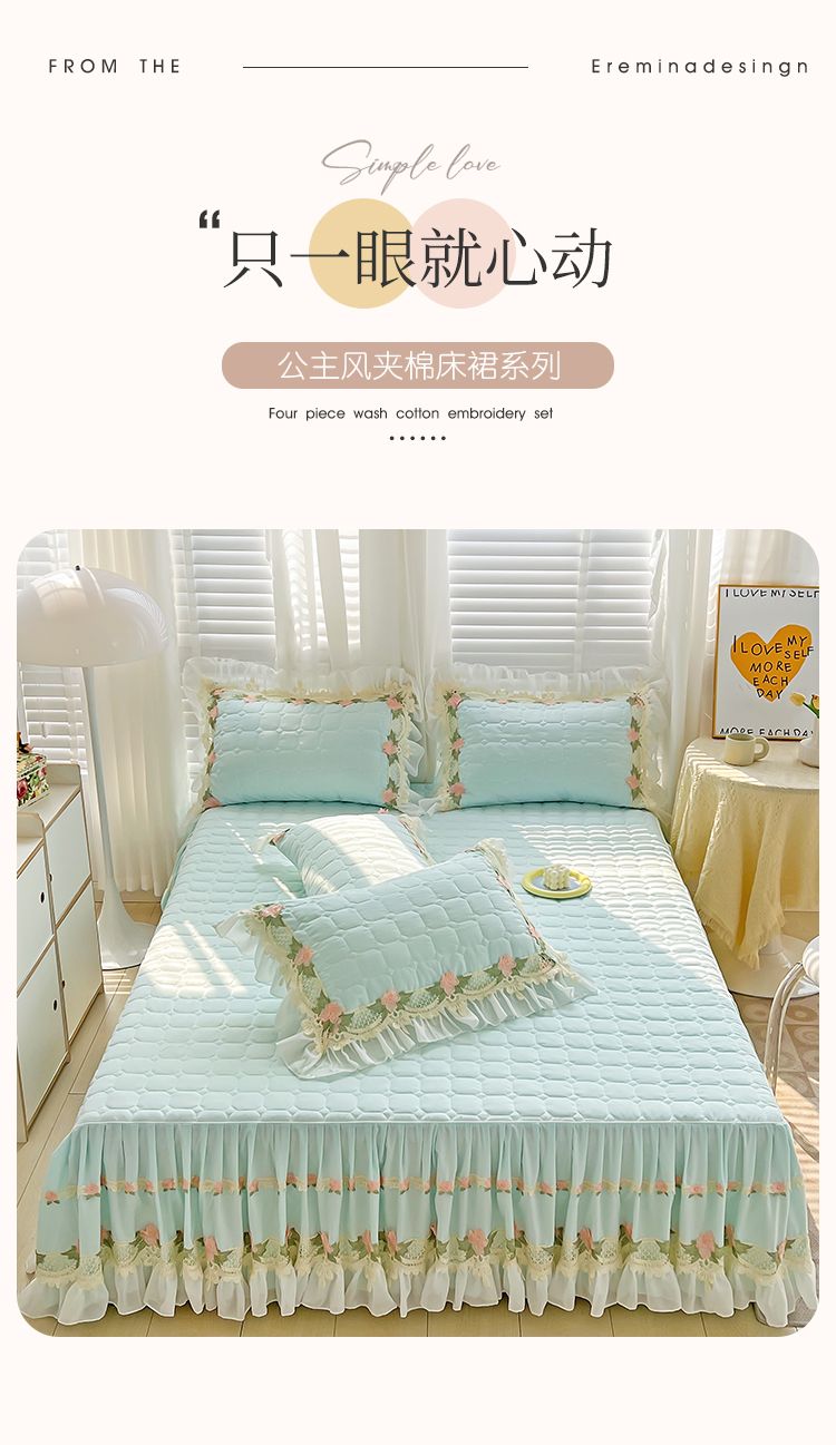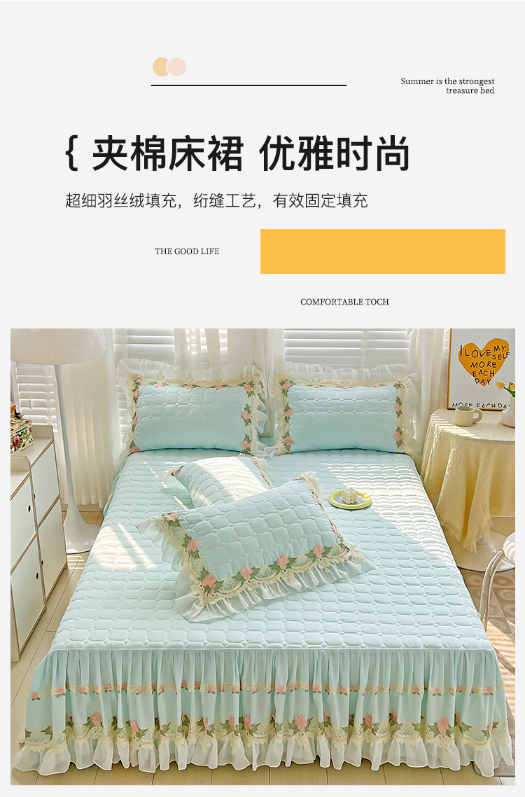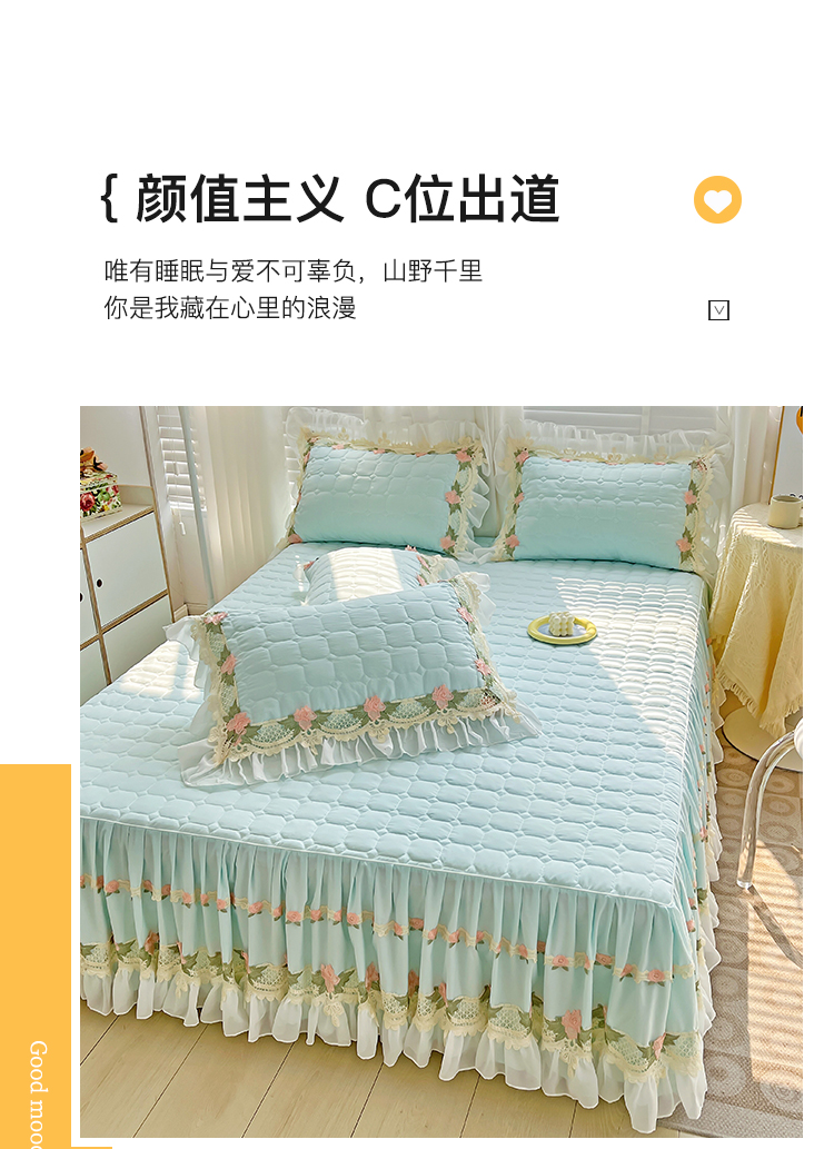当前位置: 91家纺网 > 商品网购 > 床品套件 > 三件套 > 罗艺轩 2024新款夹棉床裙施华洛系列三件套 施华洛-浅蓝