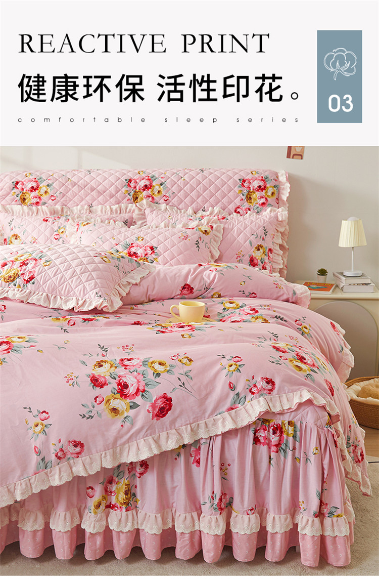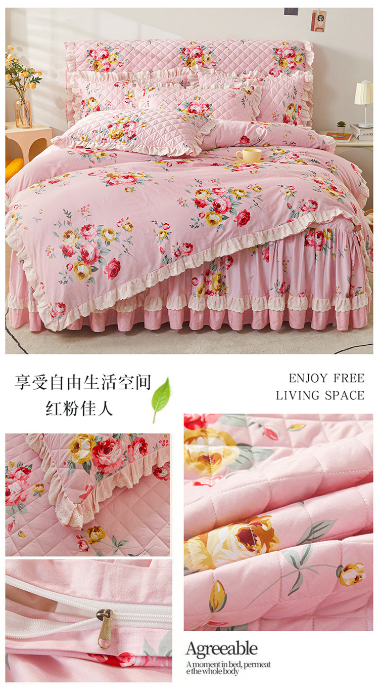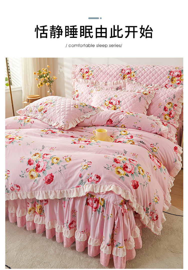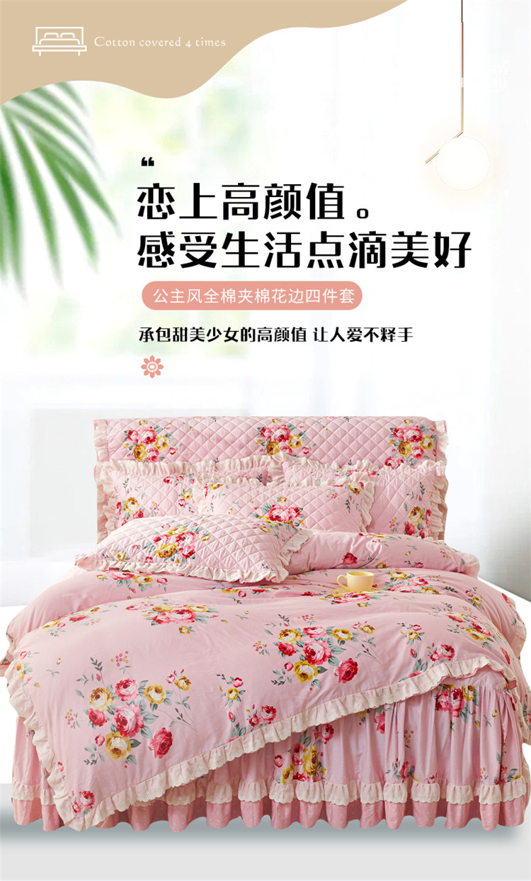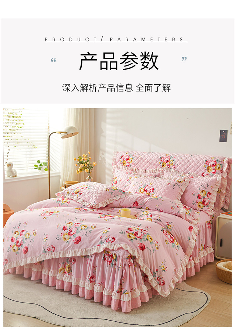 当前位置: 91家纺网 > 商品网购 > 床品套件 > 四件套 > 全棉普通四件套 > 十个点 2024新款全棉印花夹棉韩版蕾丝床裙床头罩四件套 红粉佳人