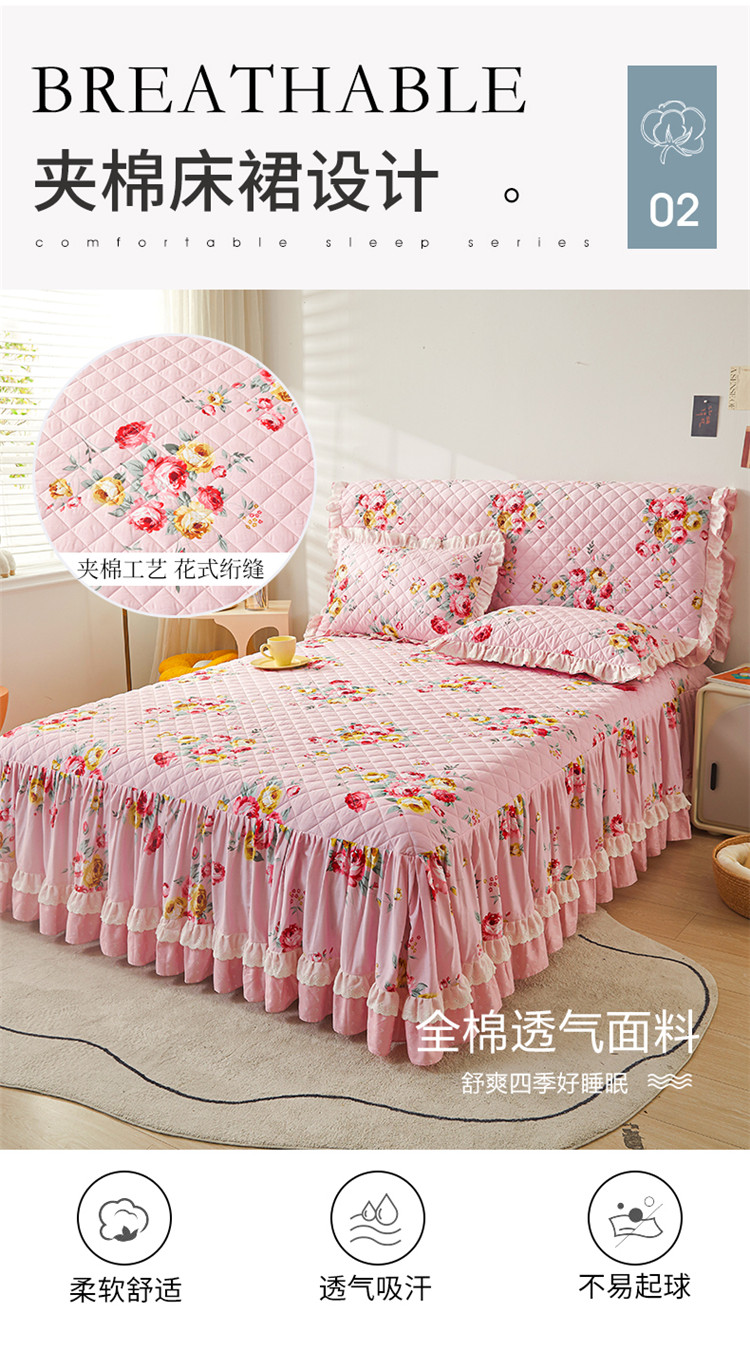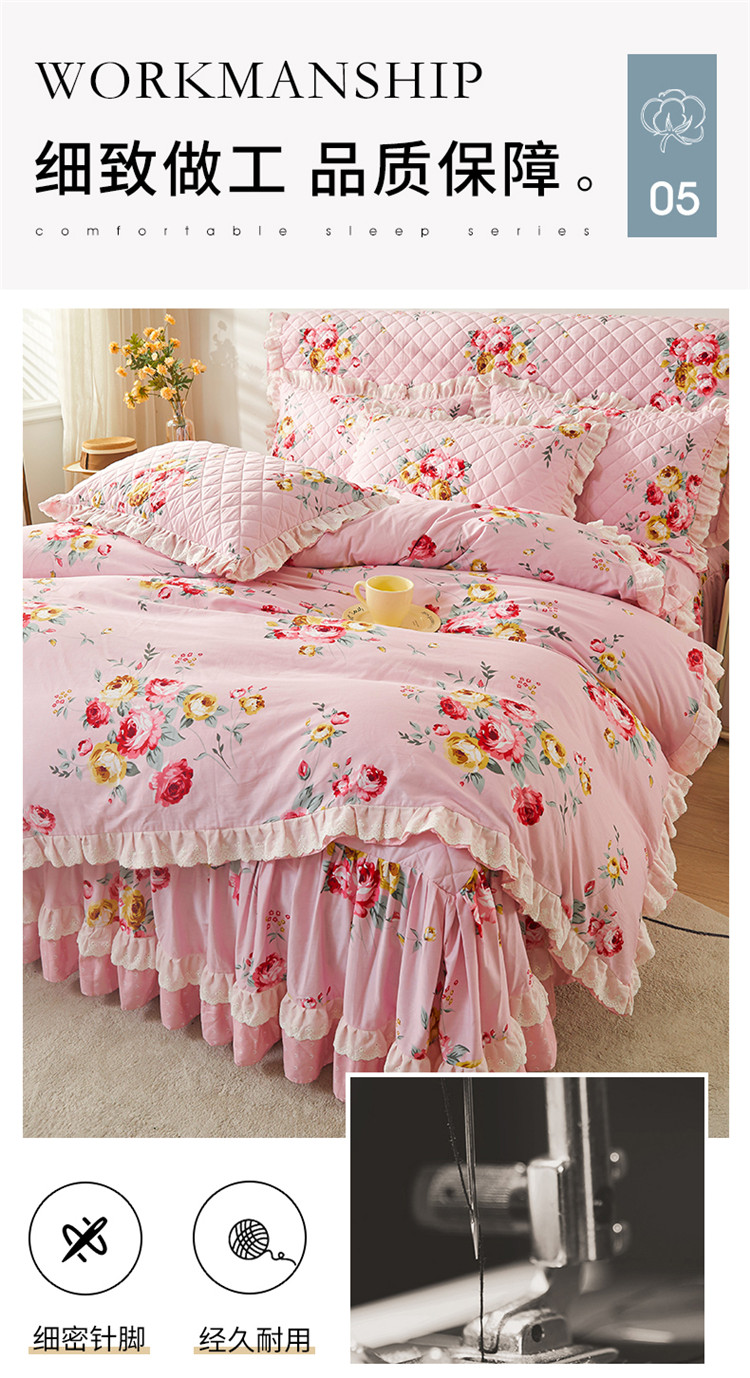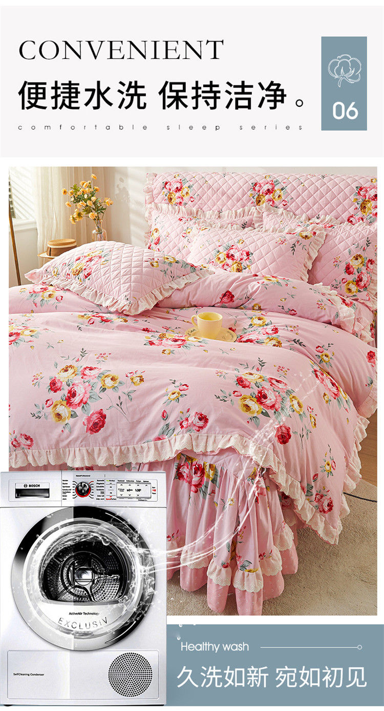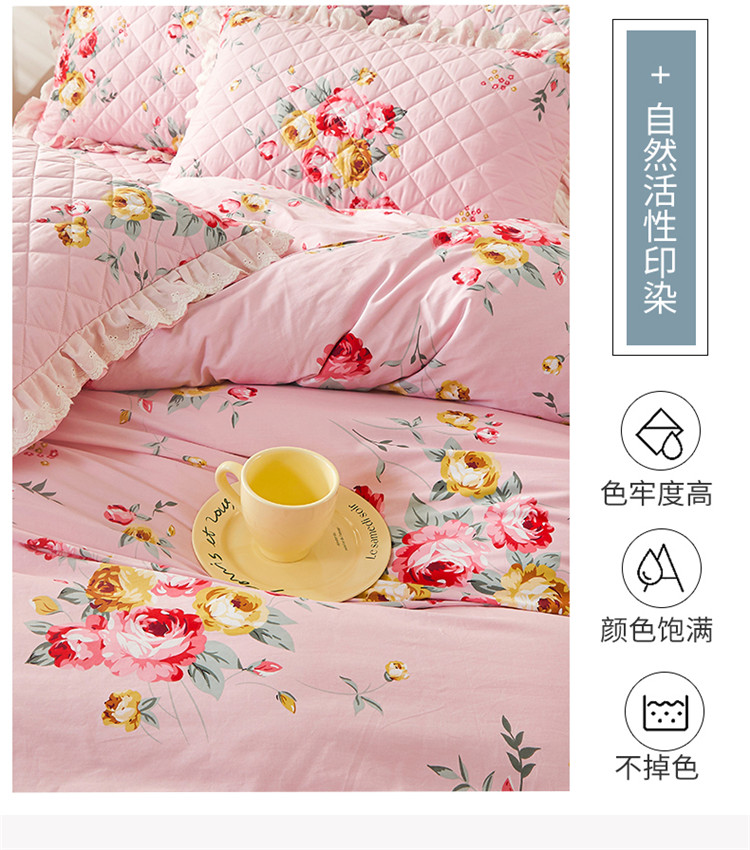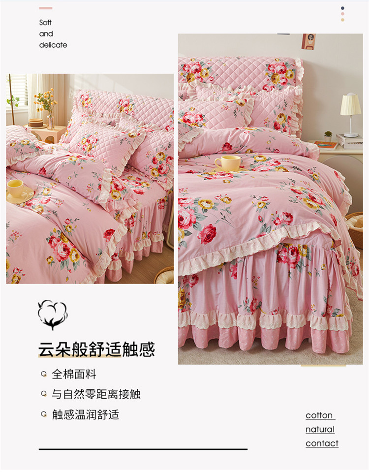 当前位置: 91家纺网 > 商品网购 > 床品套件 > 四件套 > 全棉普通四件套 > 十个点 2024新款全棉印花夹棉韩版蕾丝床裙床头罩四件套 红粉佳人