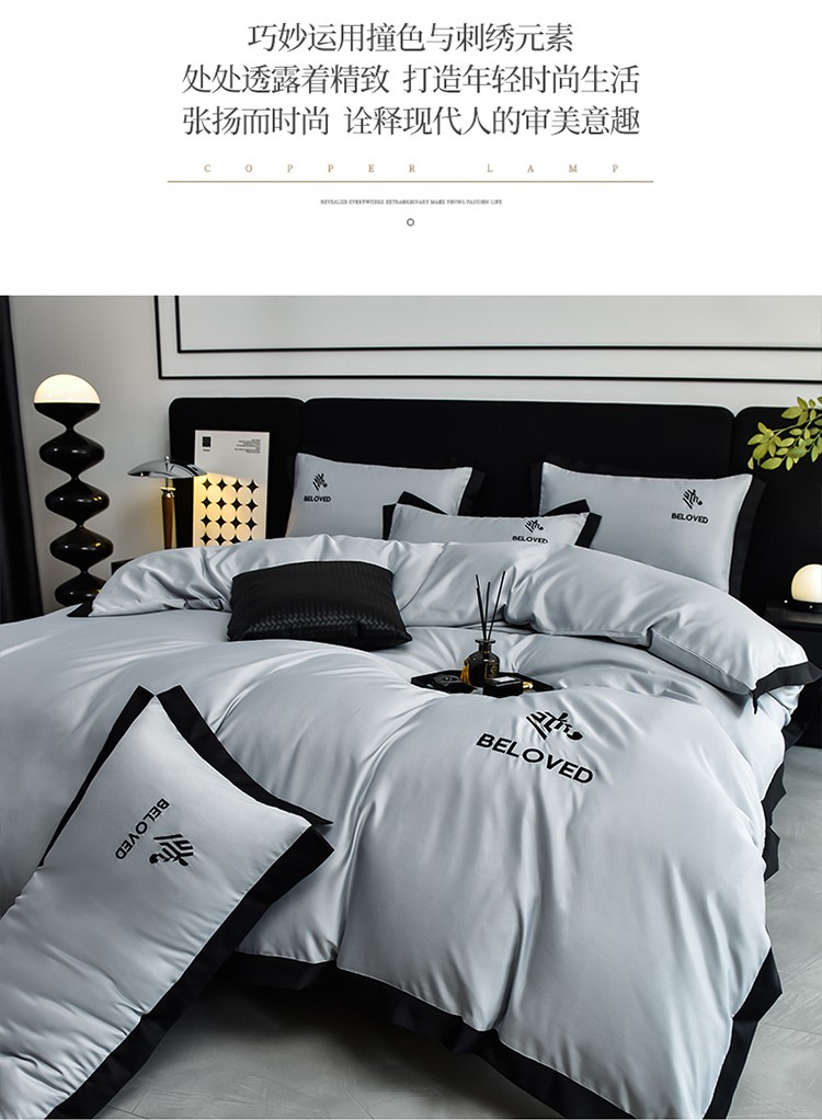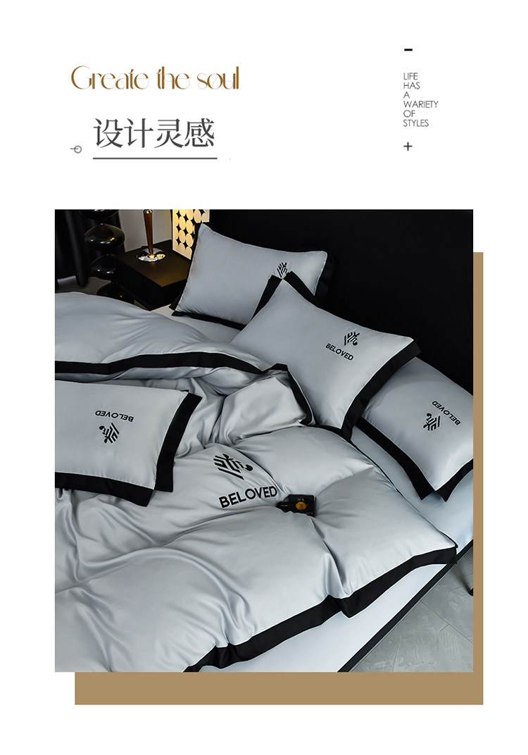 米奈 2024新款A类水洗真丝四件套-安迪 高级灰