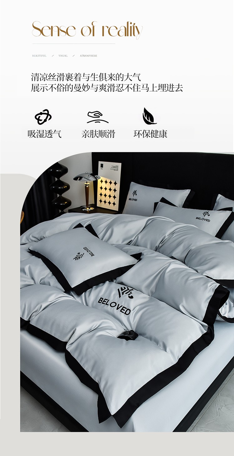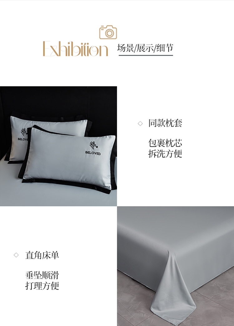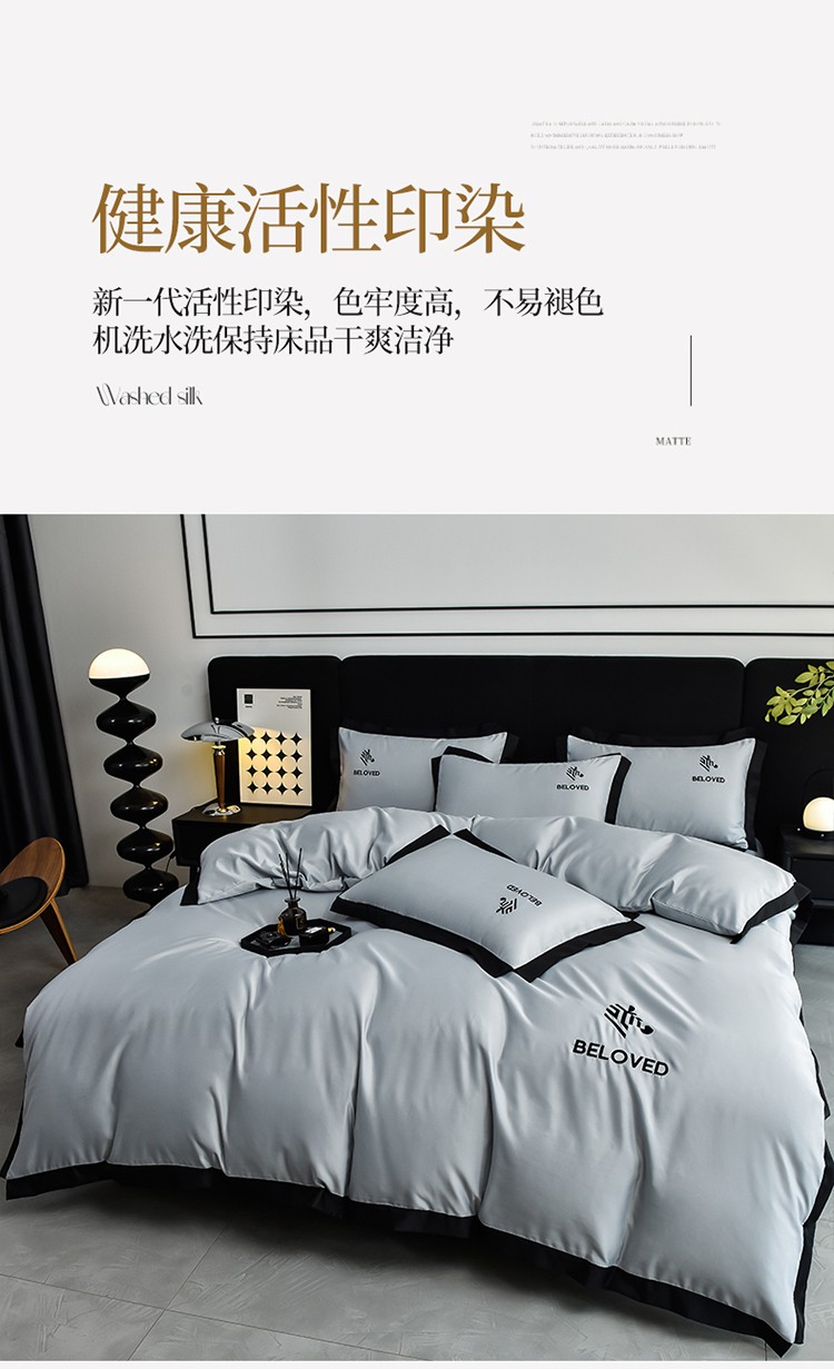 商品名称:米奈 2024新款A类水洗真丝四件套-安迪 高级灰