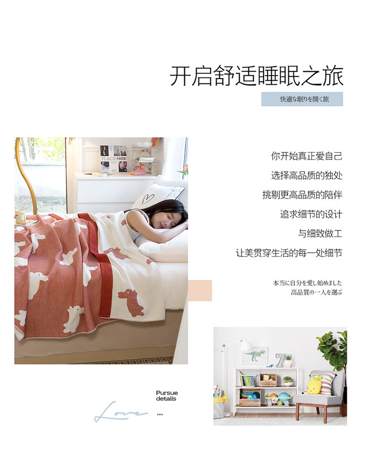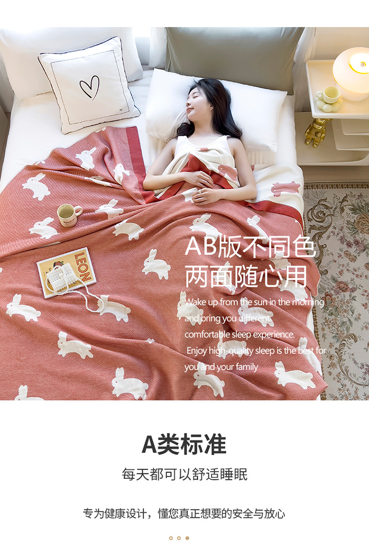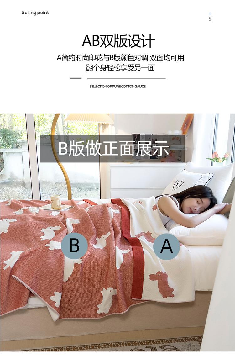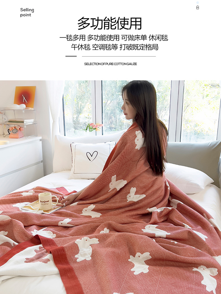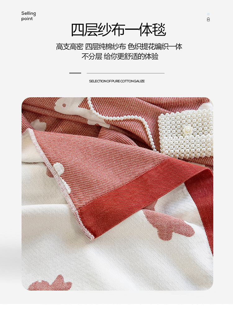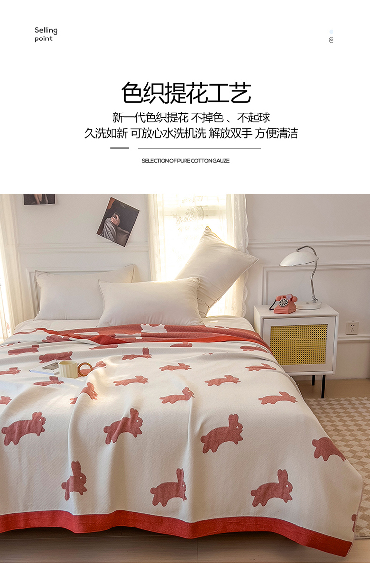 商品名称:棠薇四层全棉宽边一体纱布盖毯夏被夏凉被空调被床单床盖 前进兔