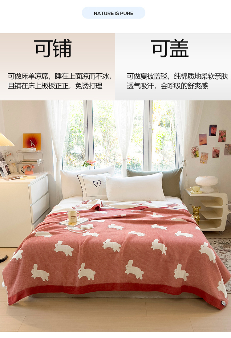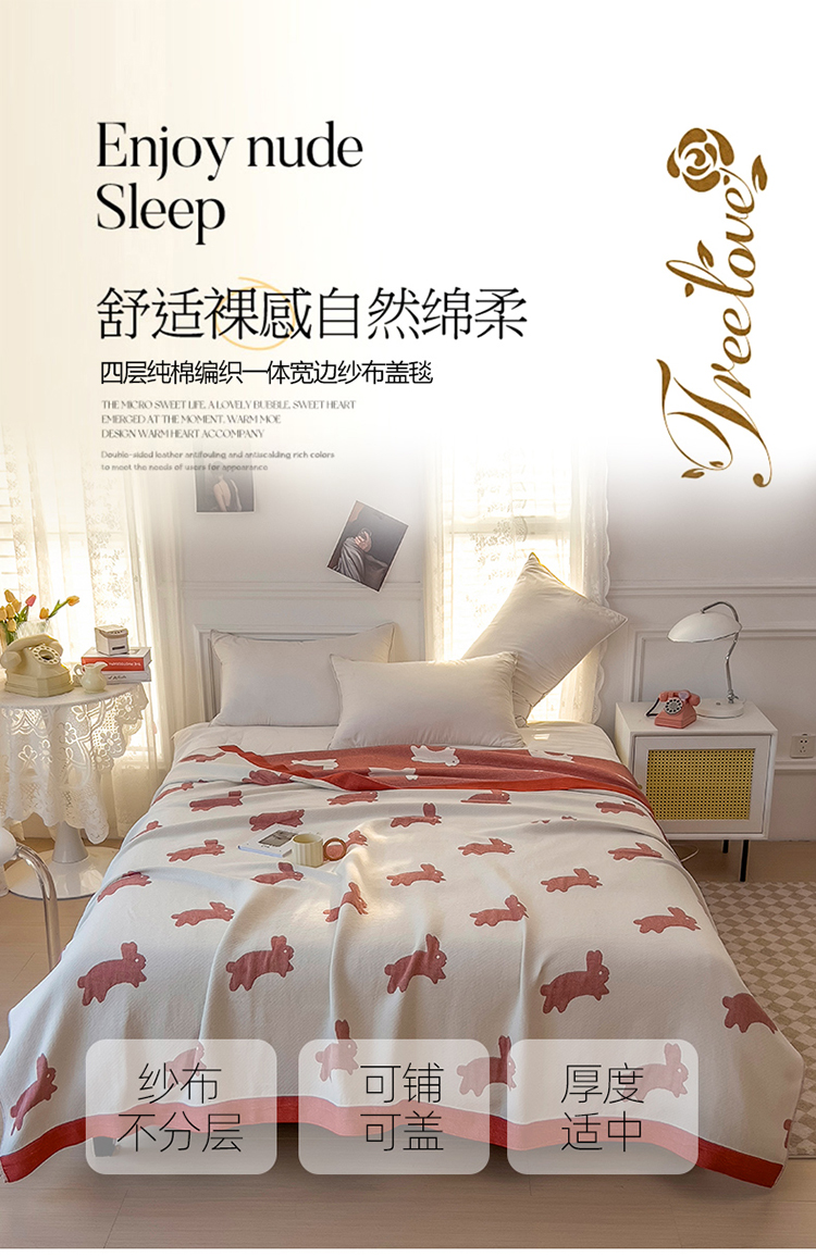 棠薇四层全棉宽边一体纱布盖毯夏被夏凉被空调被床单床盖 前进兔