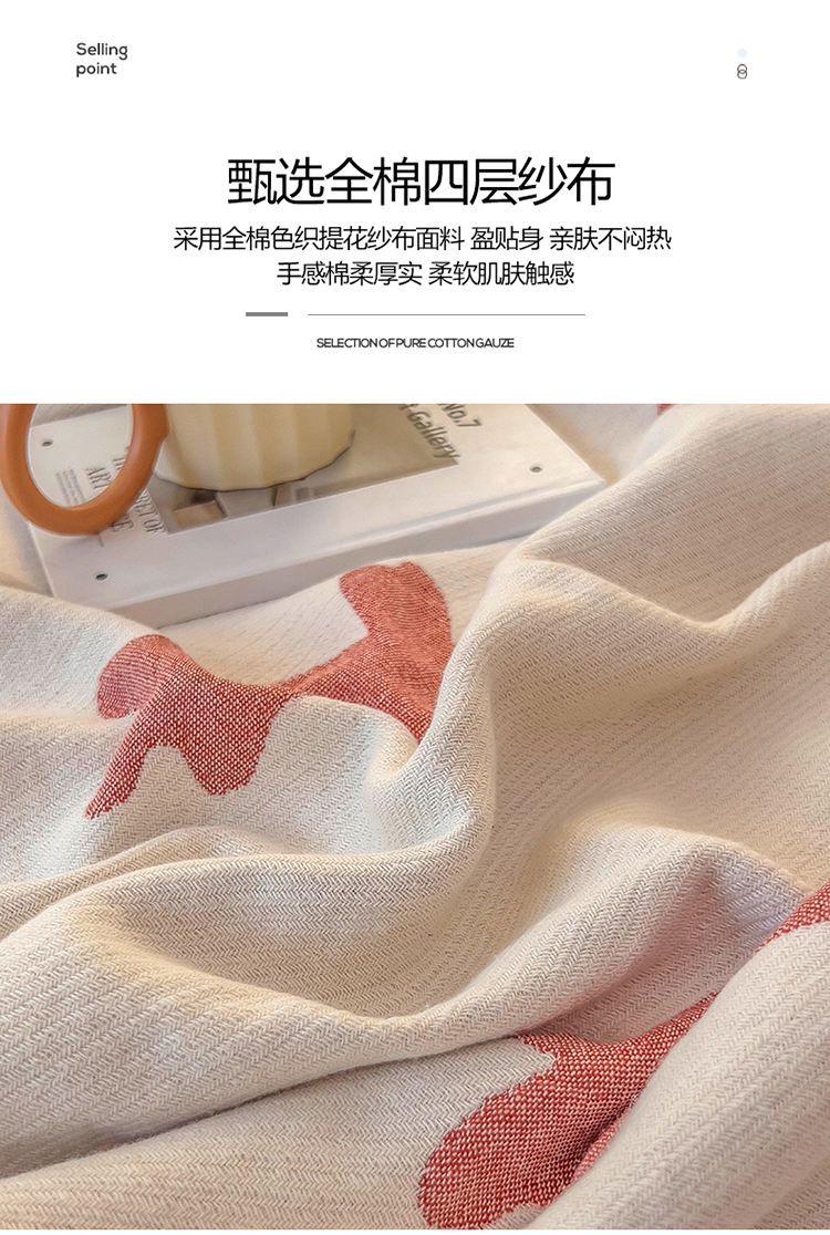 (总)棠薇家纺 2025新款爆款60S长绒棉厚百福字三层纱布毯 200x230cm 厚款60S百福毯,百福毯厚款