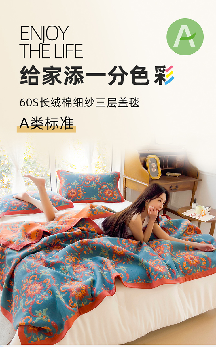 棠薇 2024新款60S纯棉细纱毛巾被盖毯夏凉被空调被夏被 温婉花境