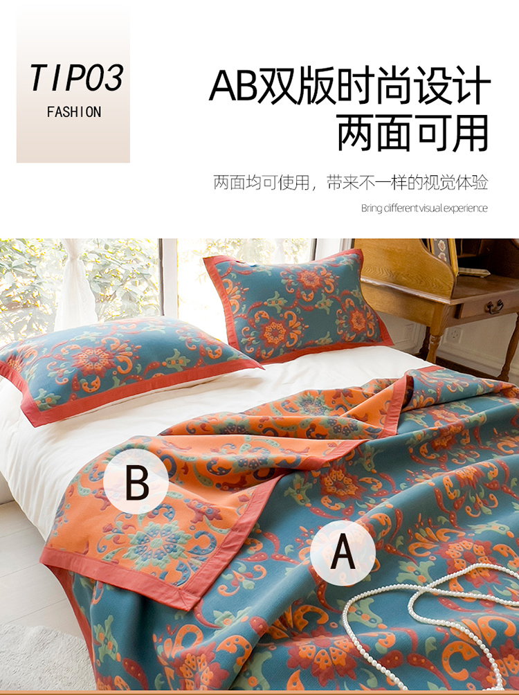 (总)棠薇家纺 2025新款爆款60S长绒棉厚百福字三层纱布毯 200x230cm 厚款60S百福毯,百福毯厚款