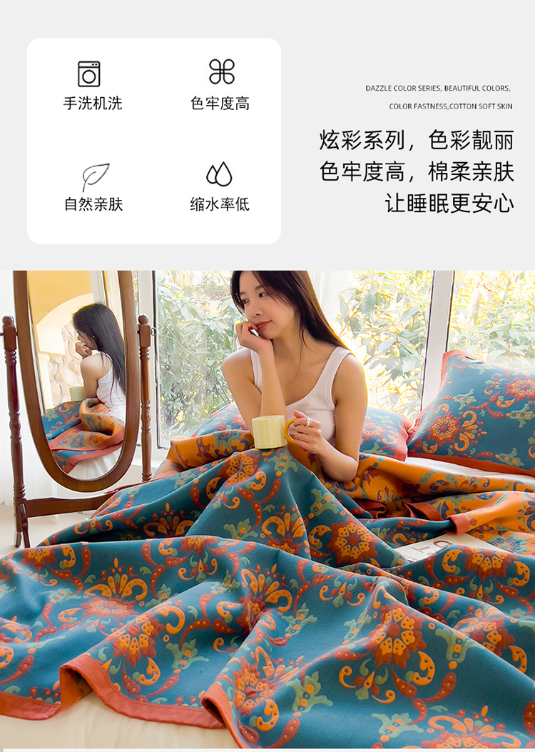 商品名称:棠薇 2024新款60S纯棉细纱毛巾被盖毯夏凉被空调被夏被 温婉花境