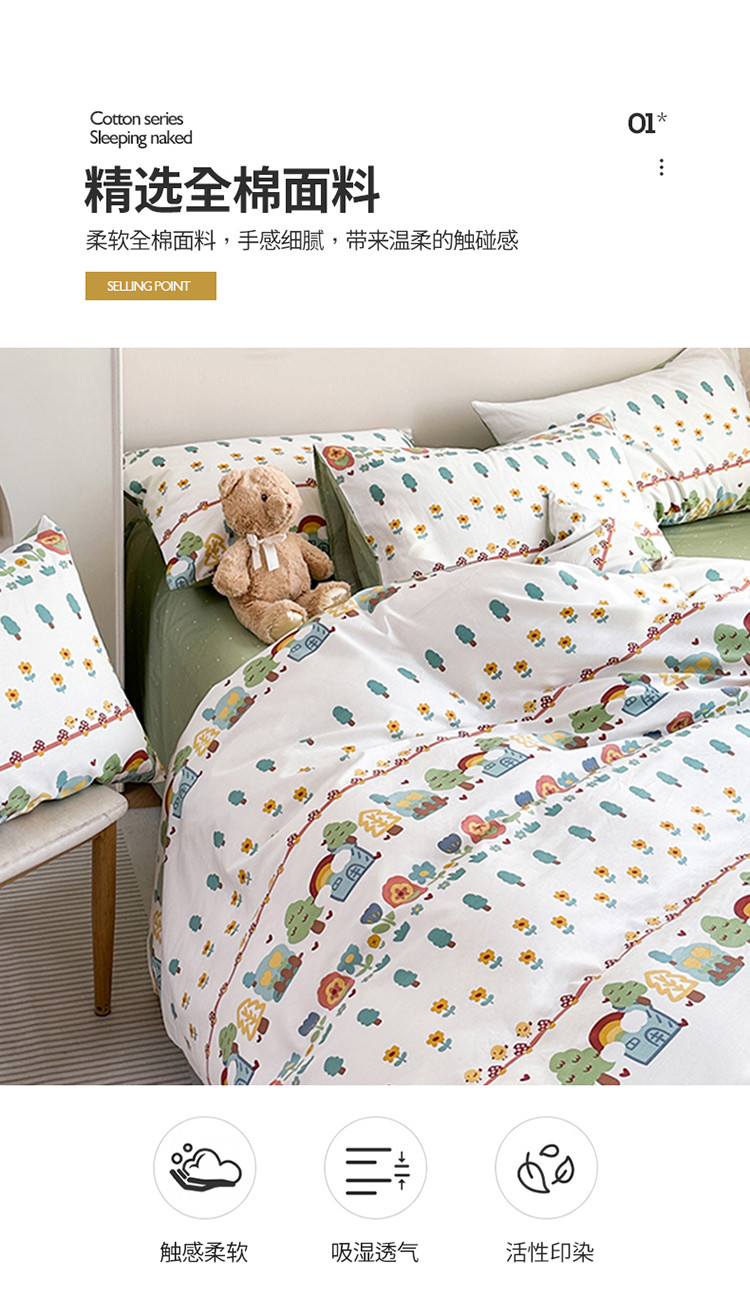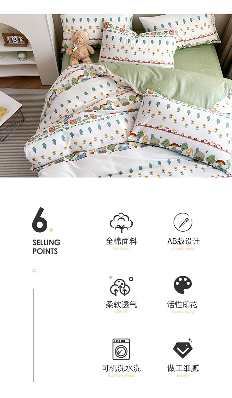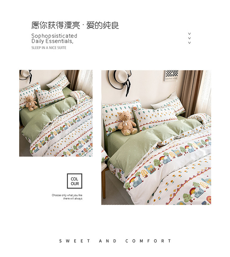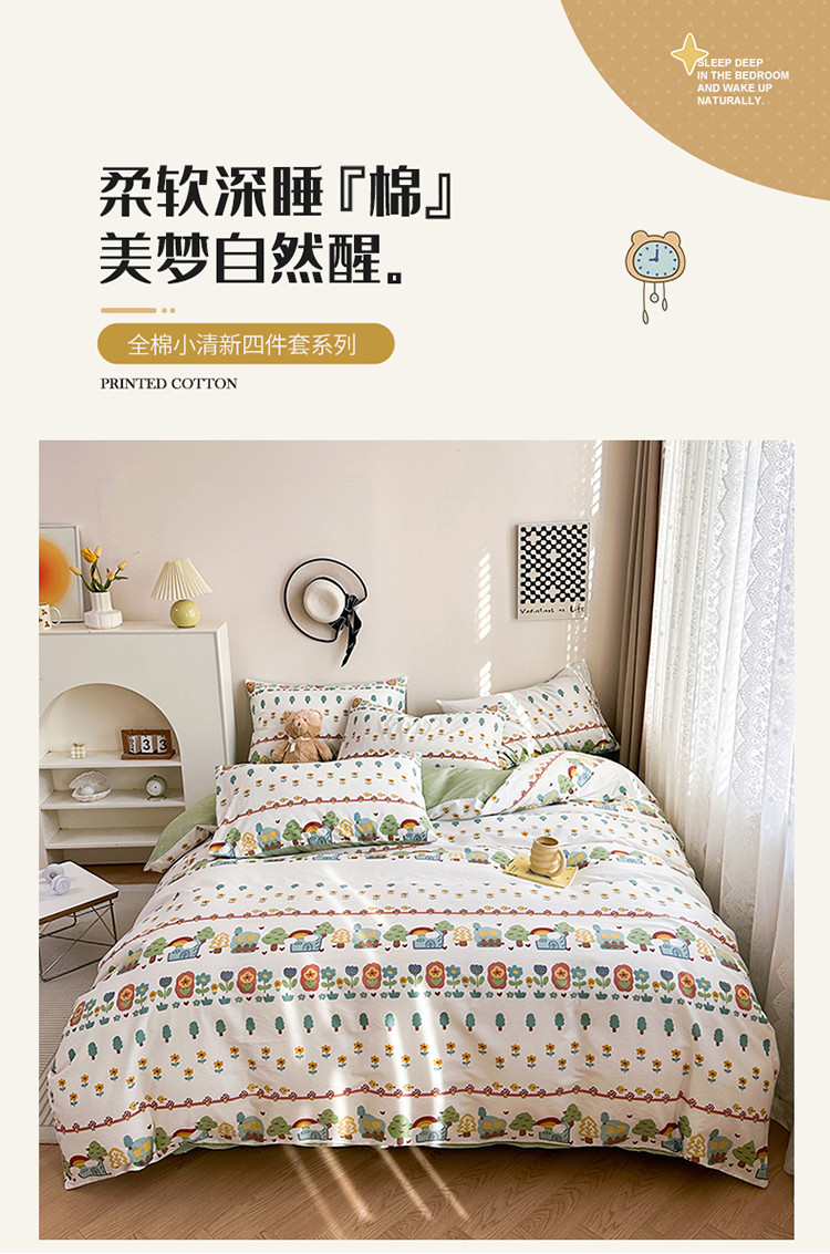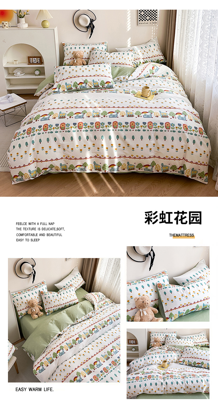 商品名称:惠居家 2023新款13372全棉小清新三件套四件套 彩虹花园
