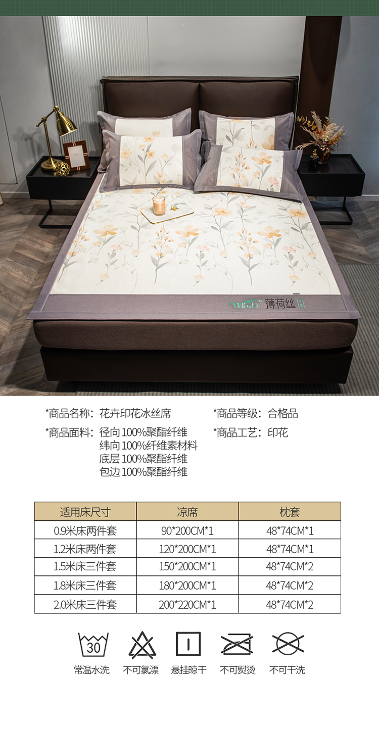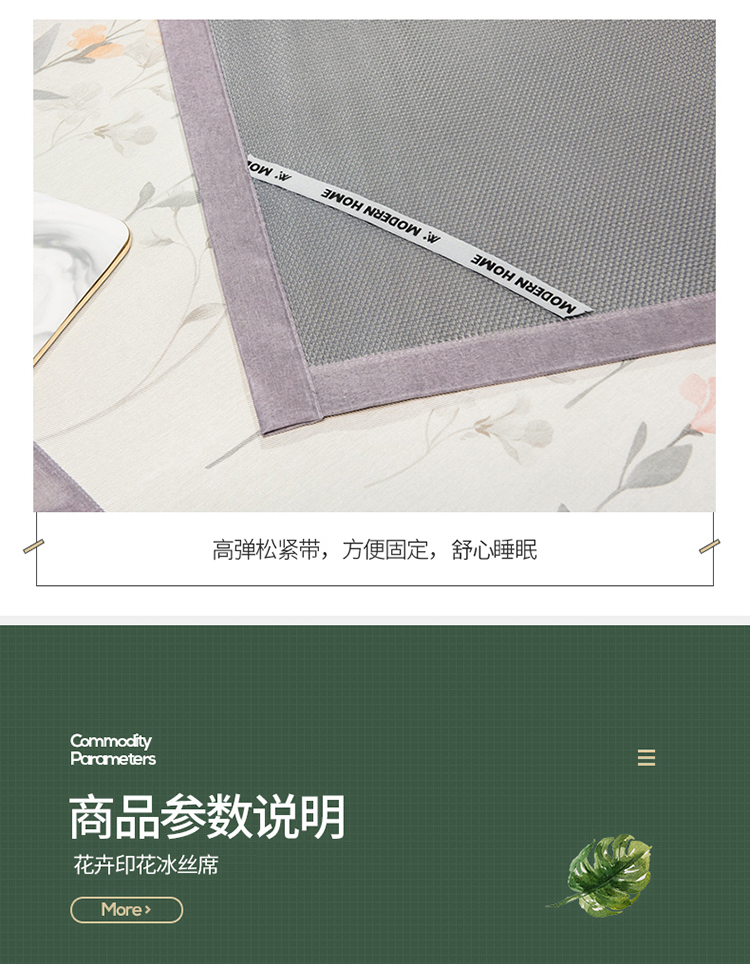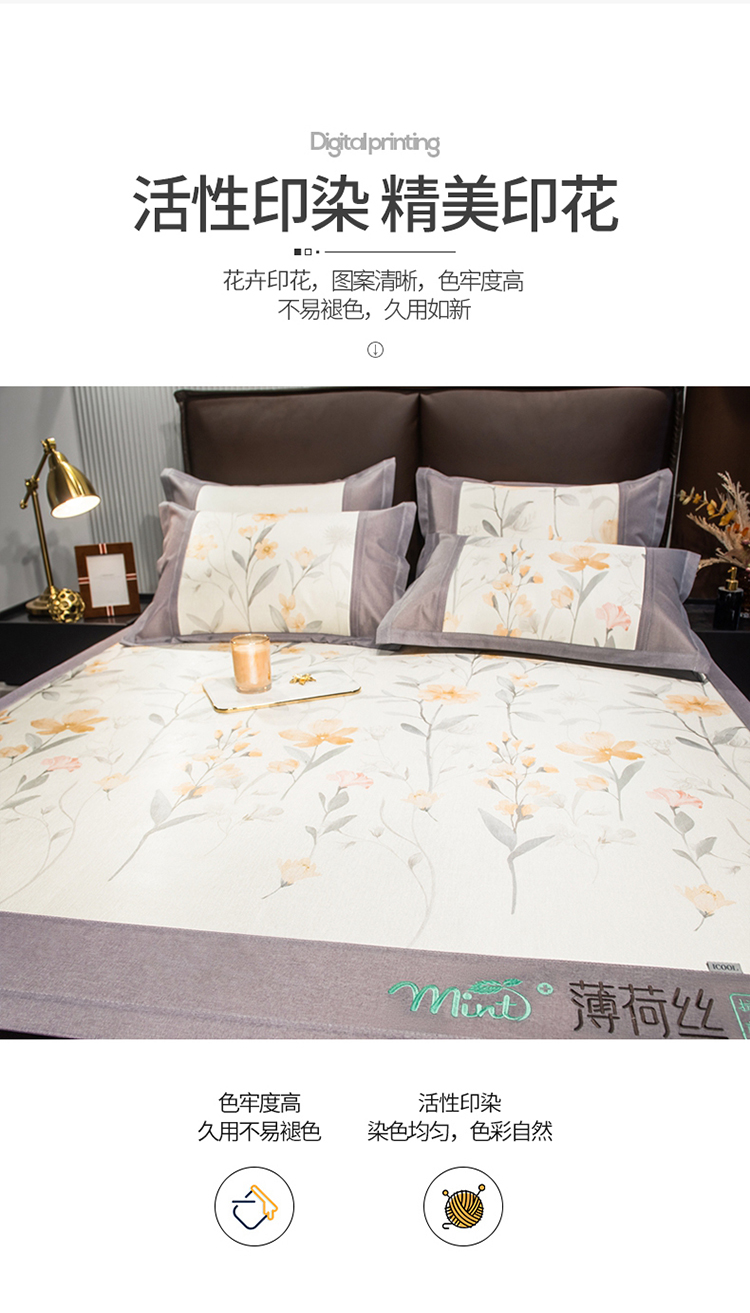 商品名称:全季家居2023年新款A类抗菌数码印花花卉系列冰丝席 水仙棕