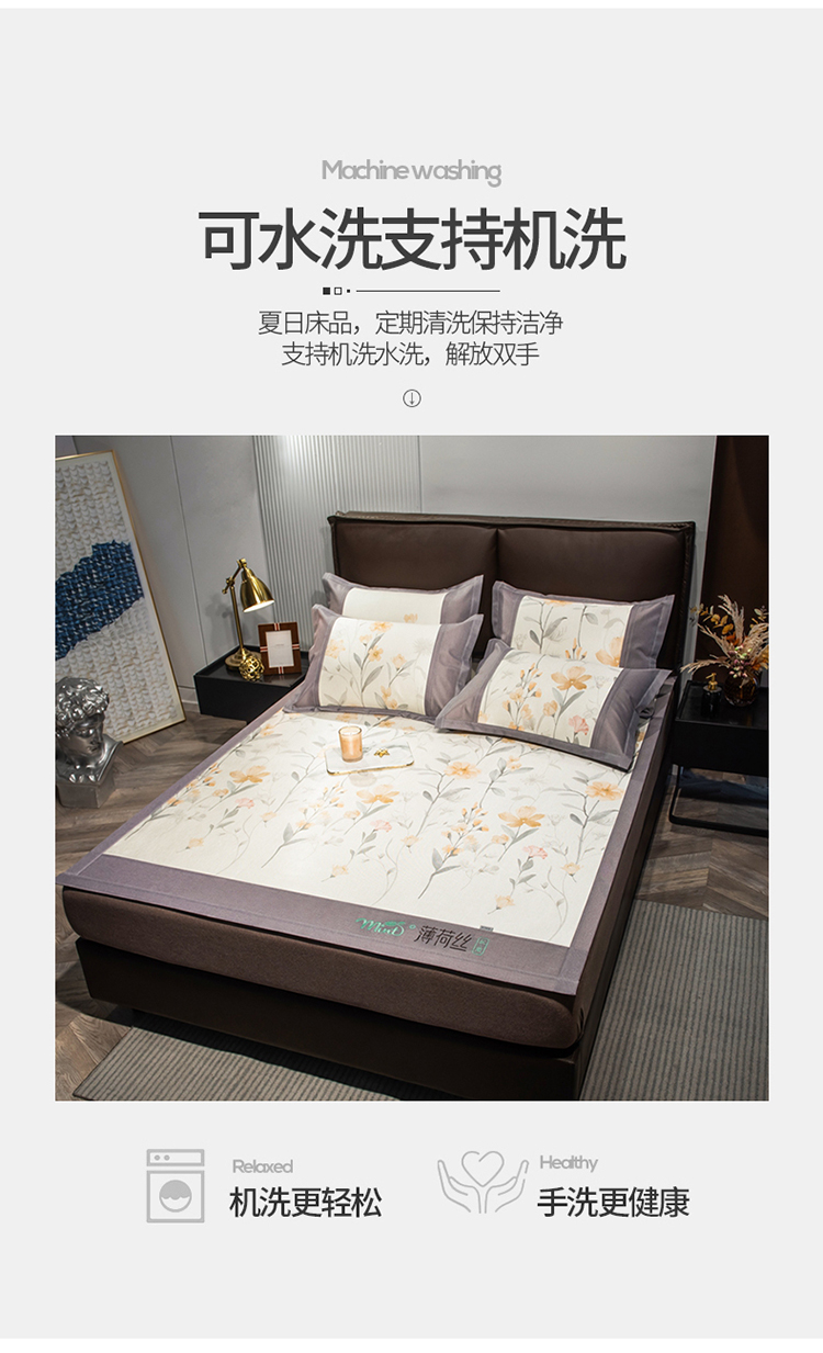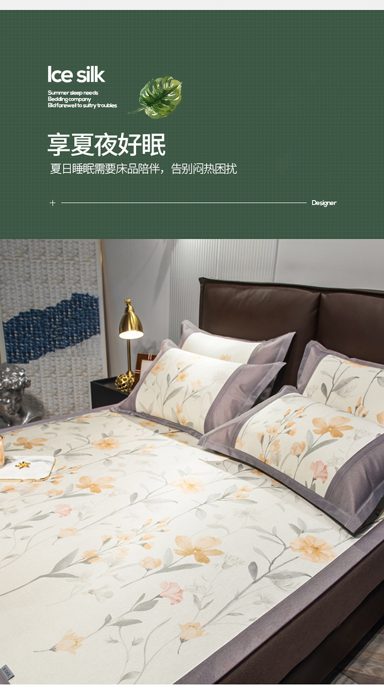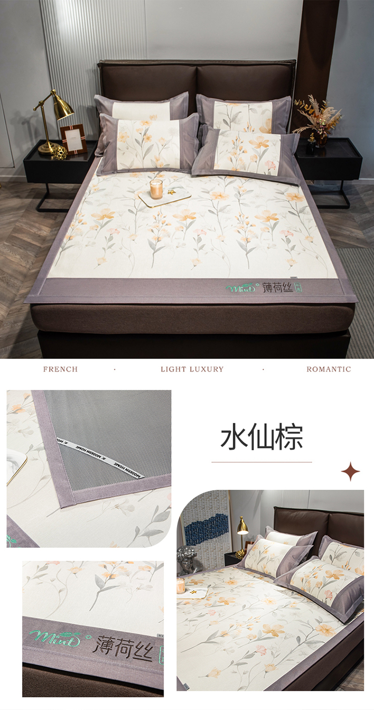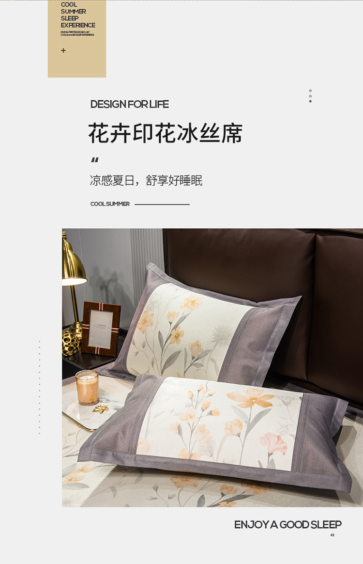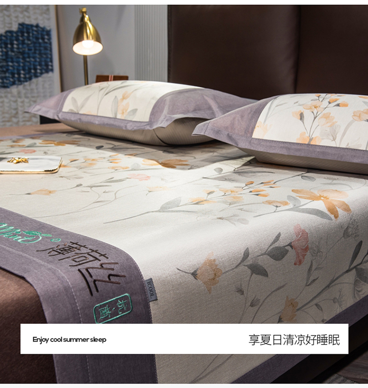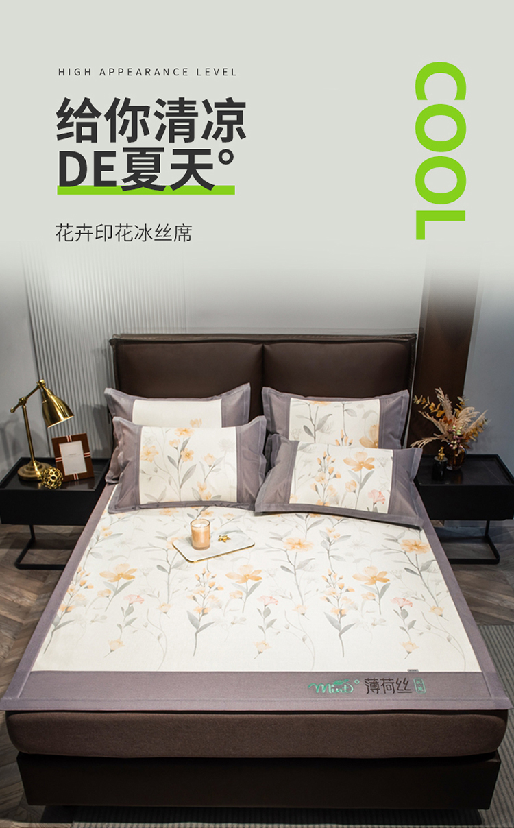 全季家居2023年新款A类抗菌数码印花花卉系列冰丝席 水仙棕