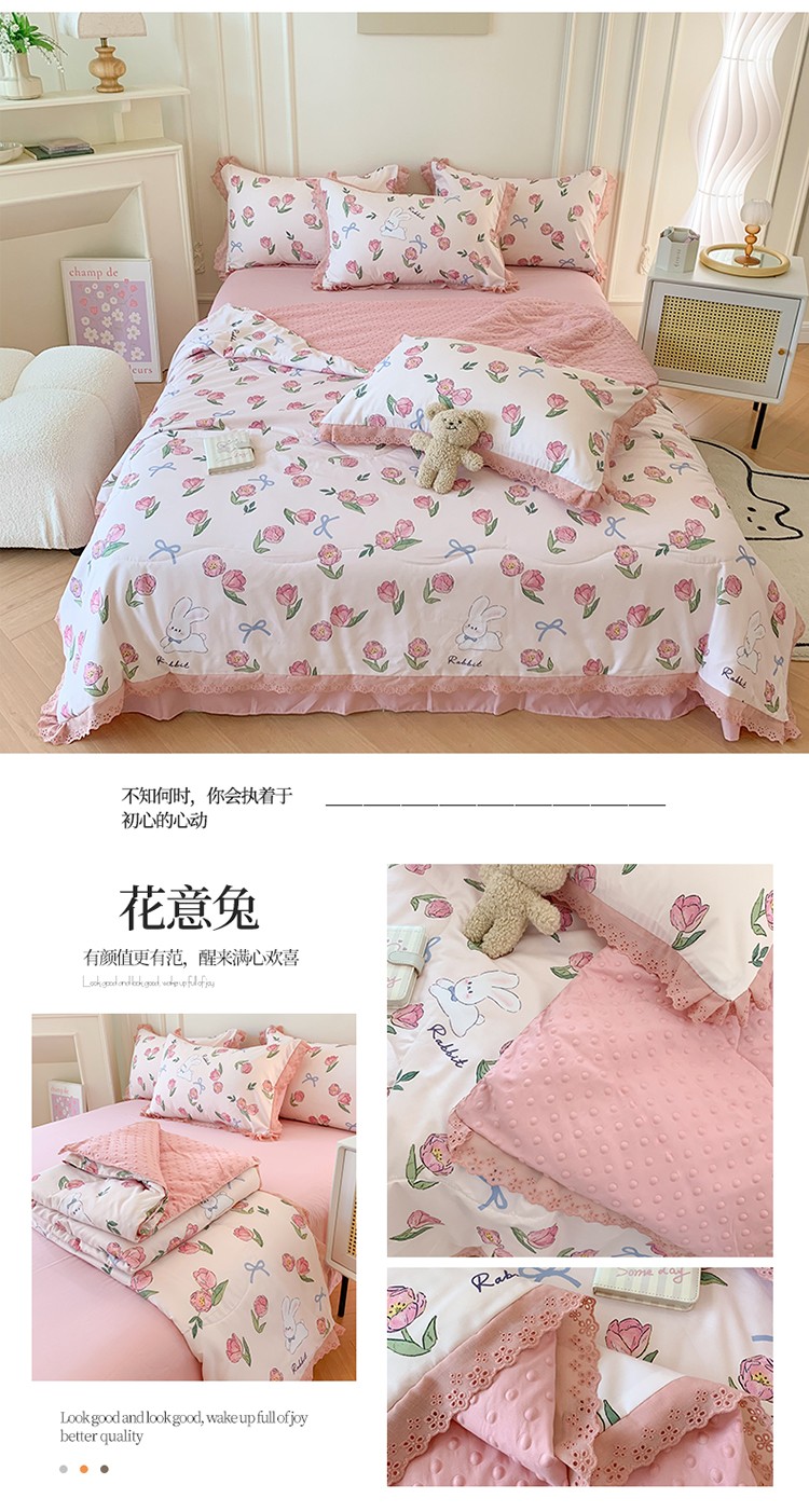 • 91家纺网 家纺一手货源 找家纺 吾欢心 2024新款韩版豆豆被夏被四件套 花意兔