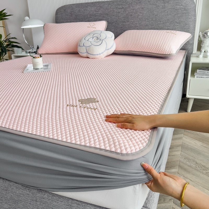 (总)席世家 2025春夏新款430g凉感豆豆床裙席凉席席子-幻影系列,幻影-米灰,幻影-蜜裸粉,幻影-松灰,幻影-星雾蓝