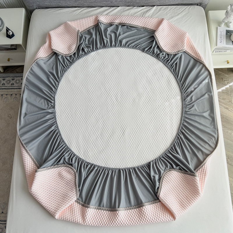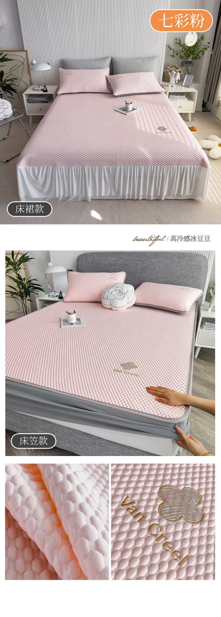 席世家 2023新款高冷感冰豆豆三件套床笠款床裙款 七彩粉-床笠款