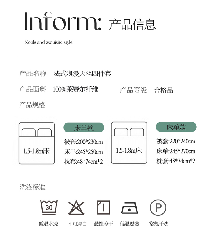 商品名称:罗优家纺 2023新款法式浪漫天丝四件套 香草绿