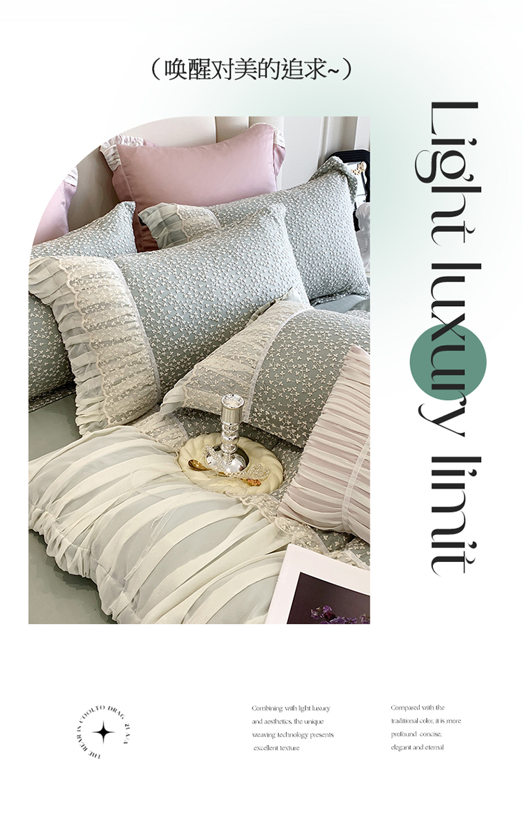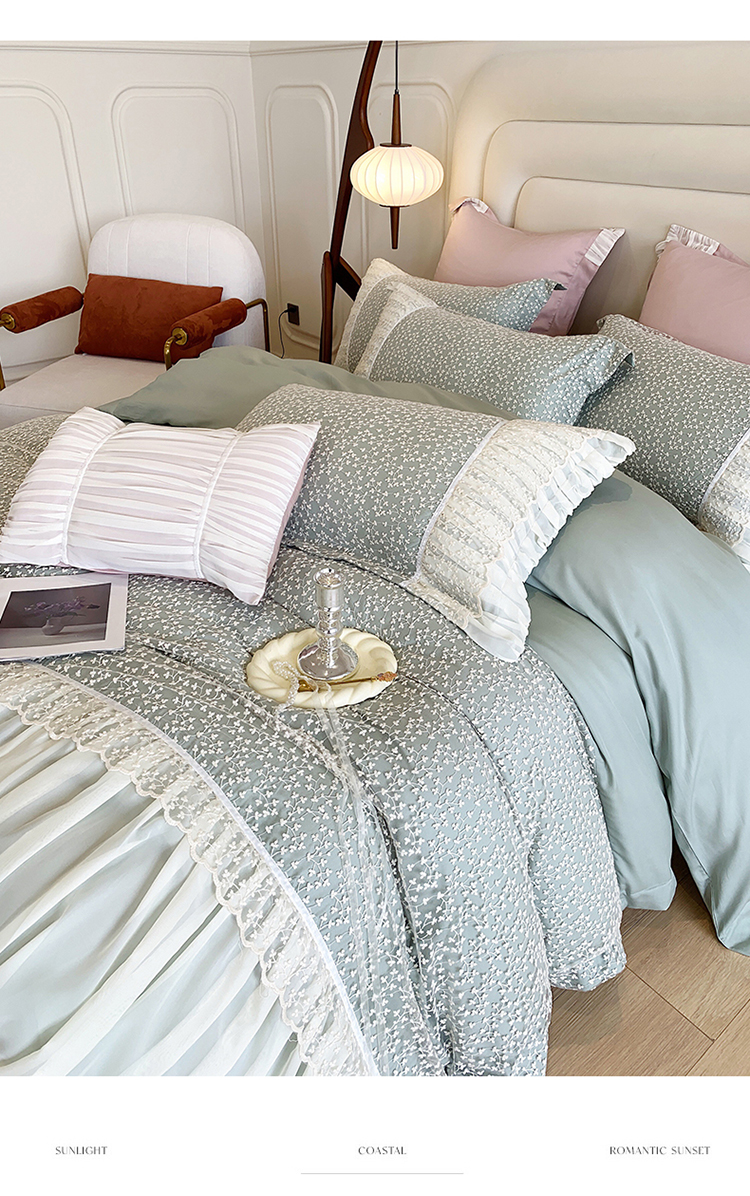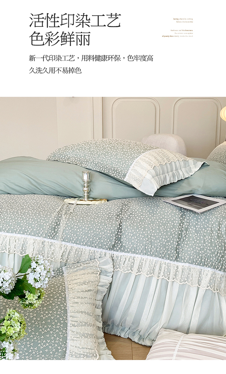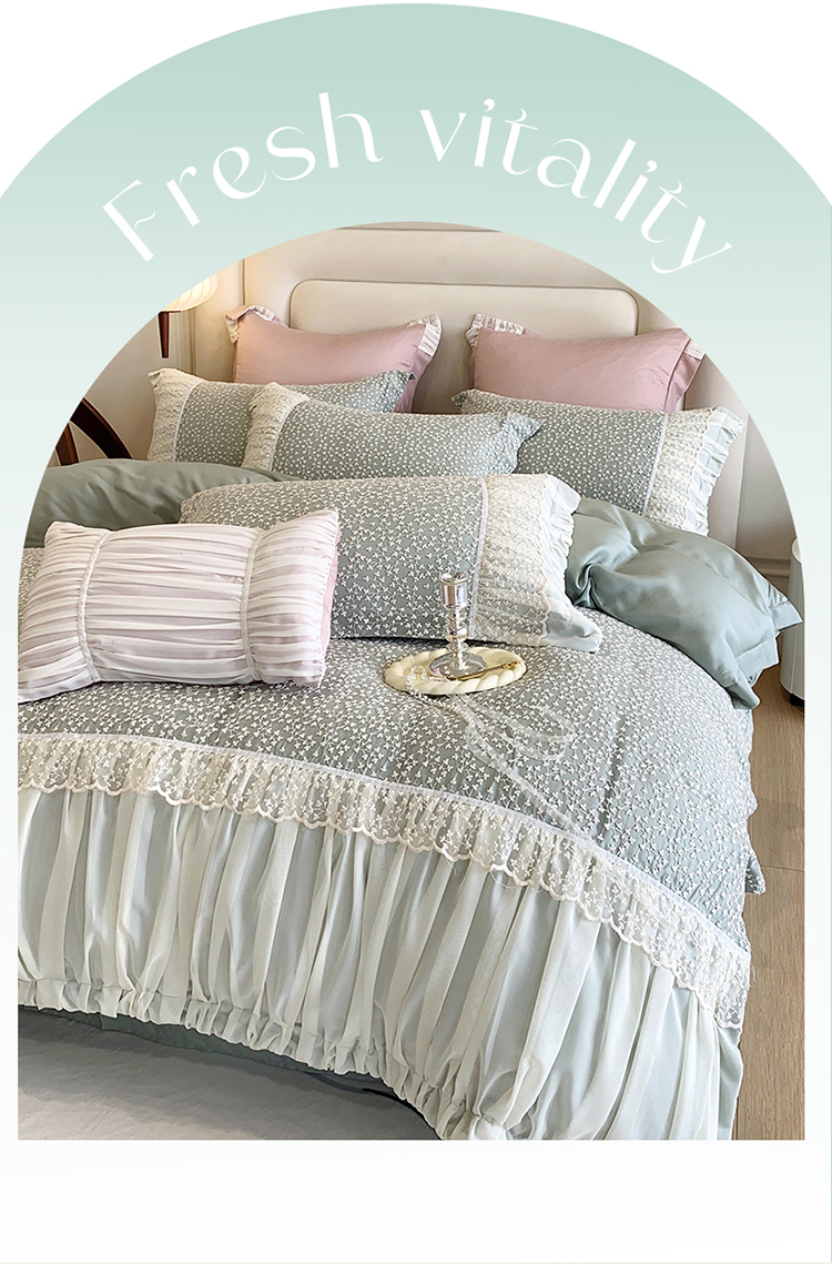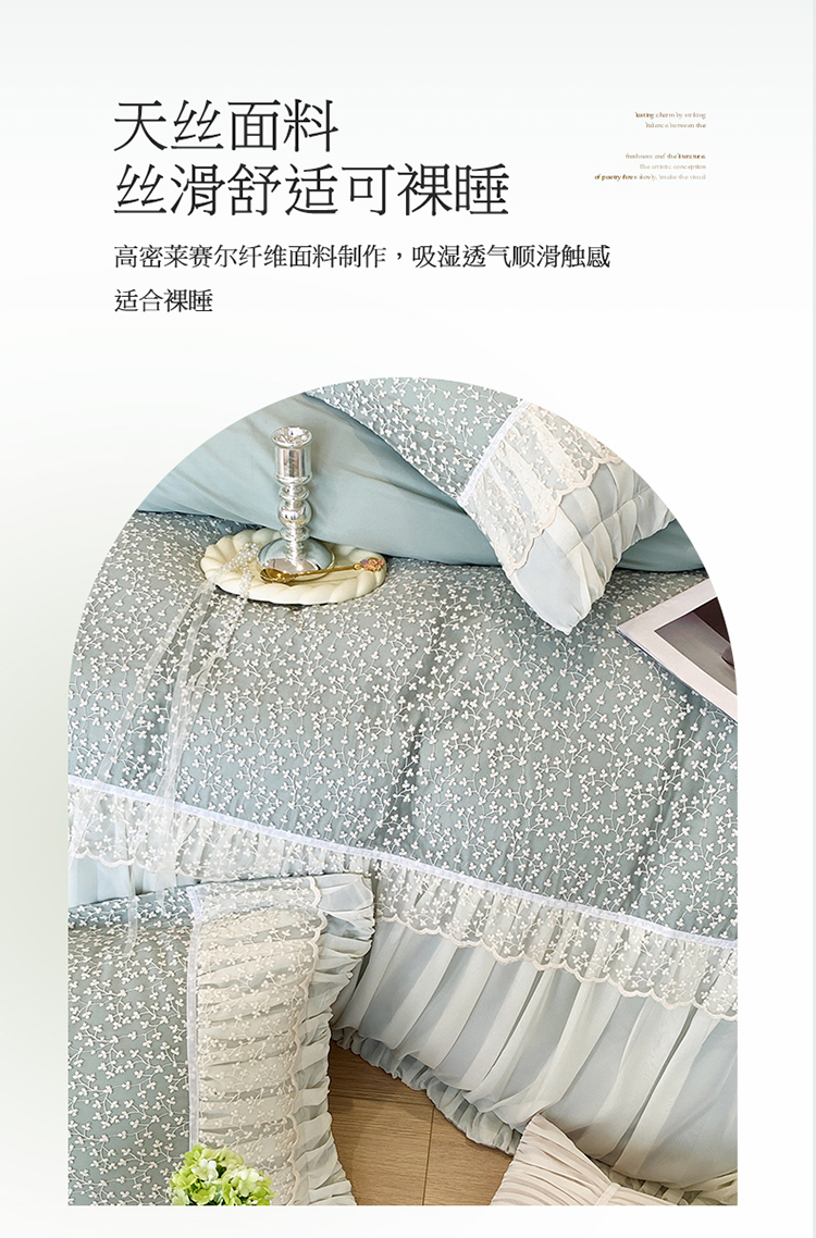 罗优家纺 2023新款法式浪漫天丝四件套 香草绿