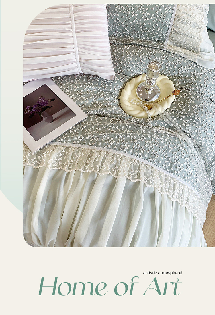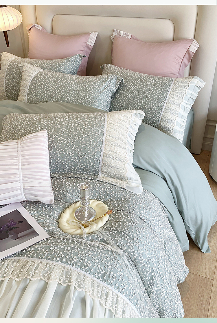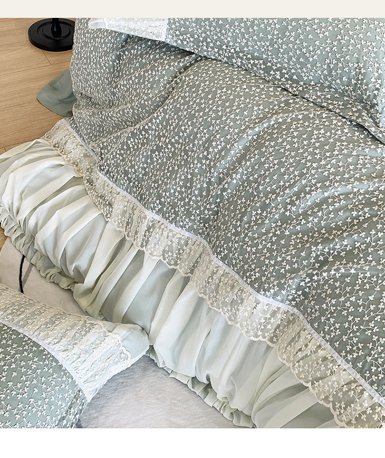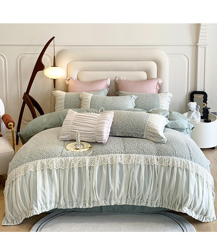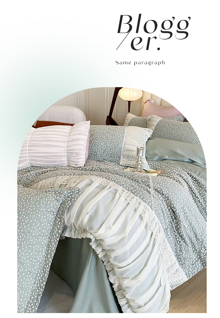 罗优家纺 2023新款法式浪漫天丝四件套 香草绿
