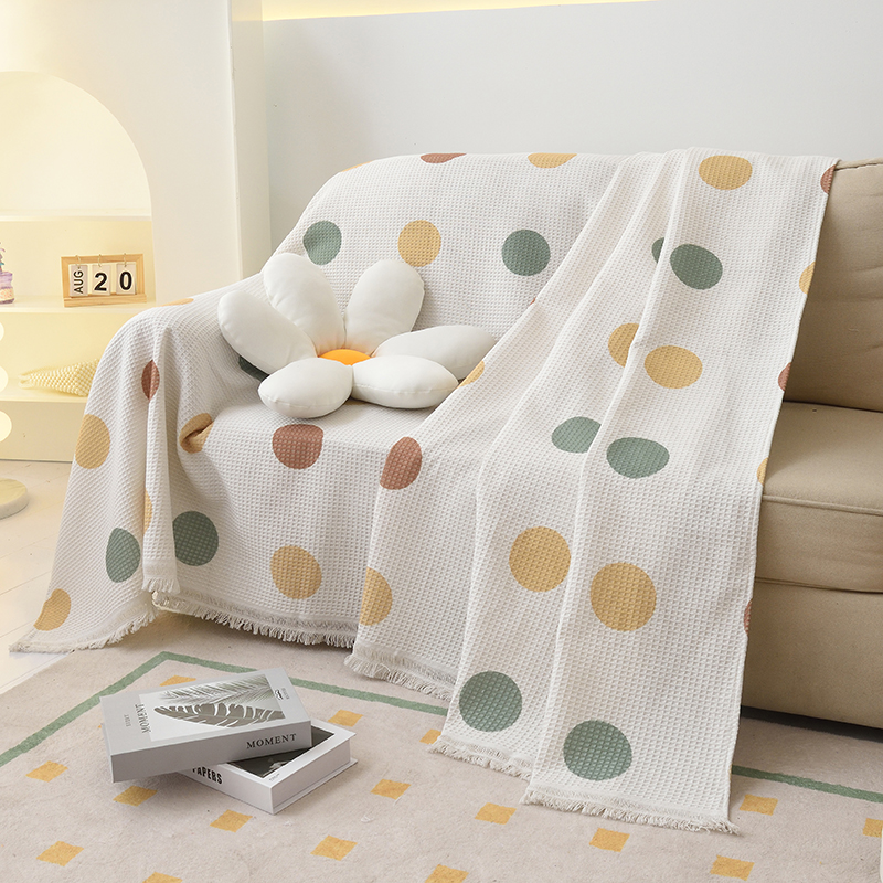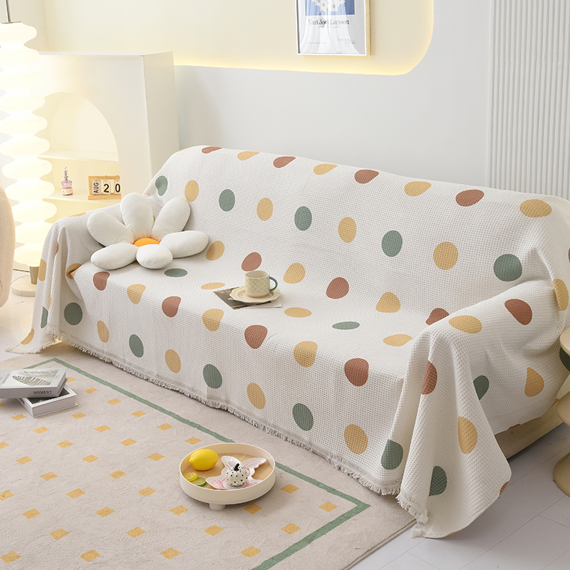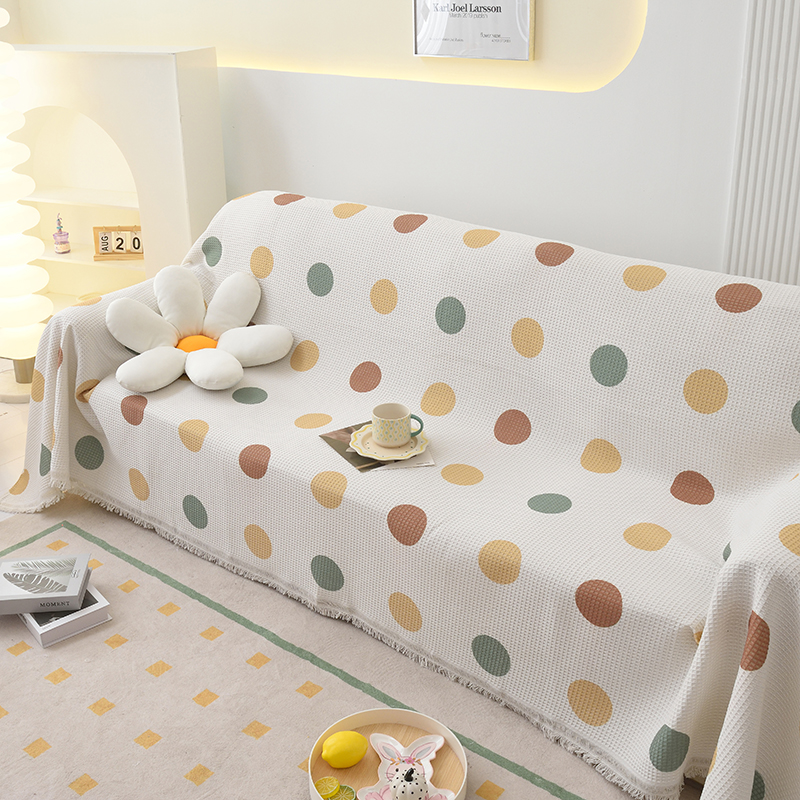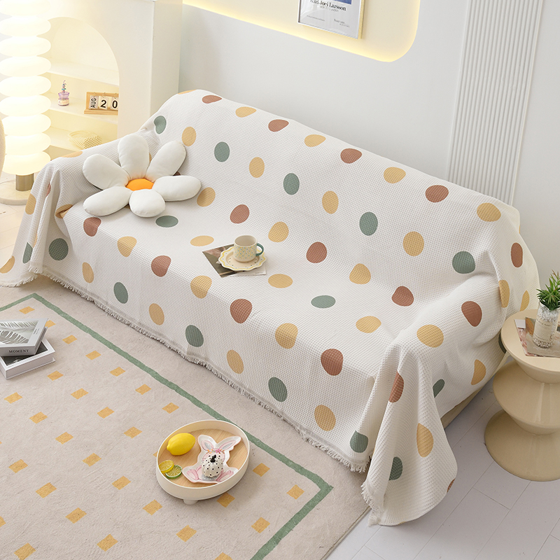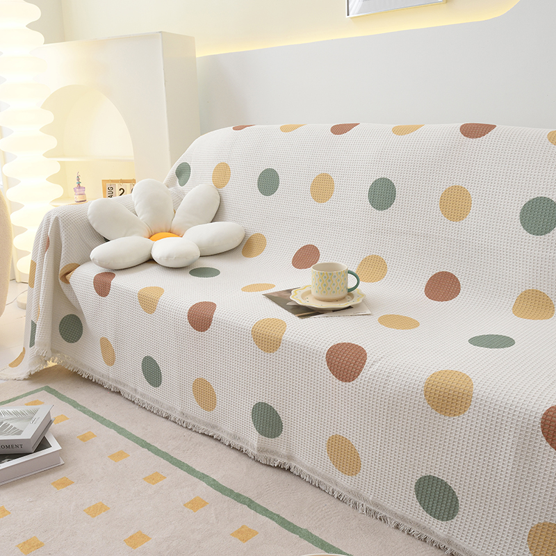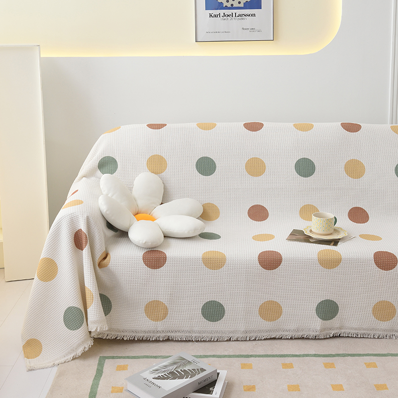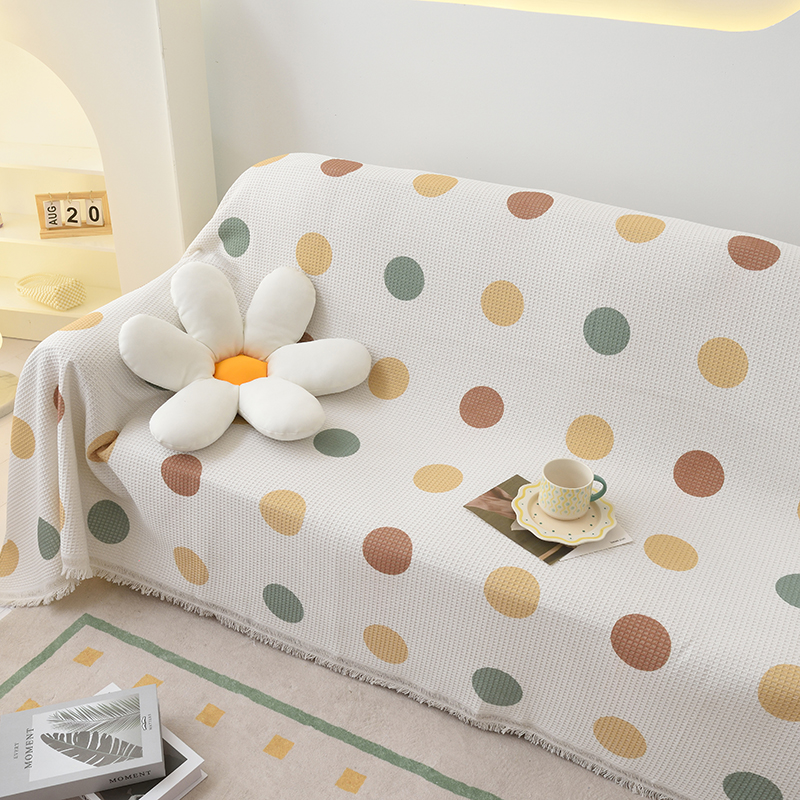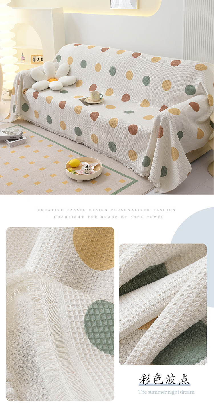 当前位置: 91家纺网 > 商品网购 > 居家布艺 > 坐垫/椅垫/沙发垫 > 沙发垫 > 启博家纺 2023爆款针织棉线沙发巾 彩色波点
