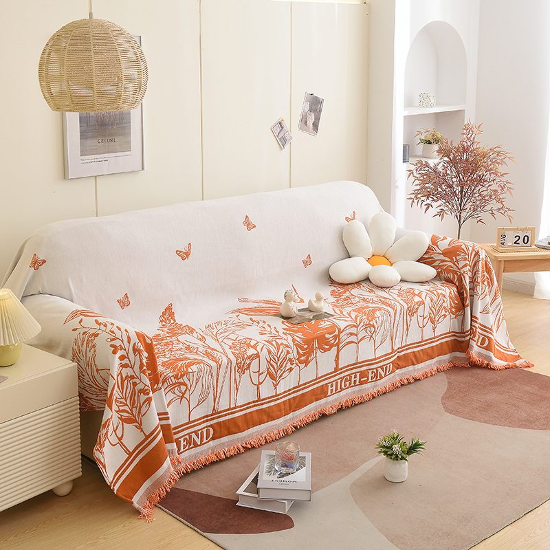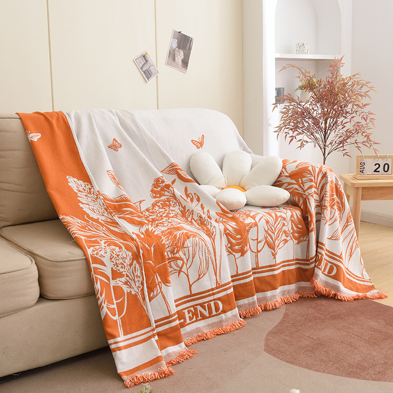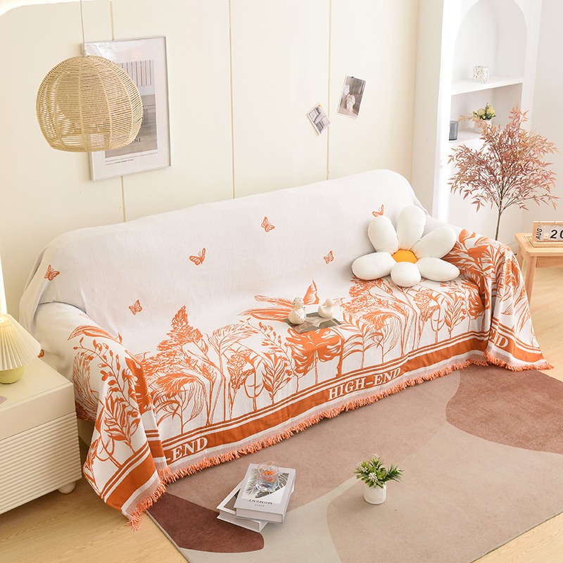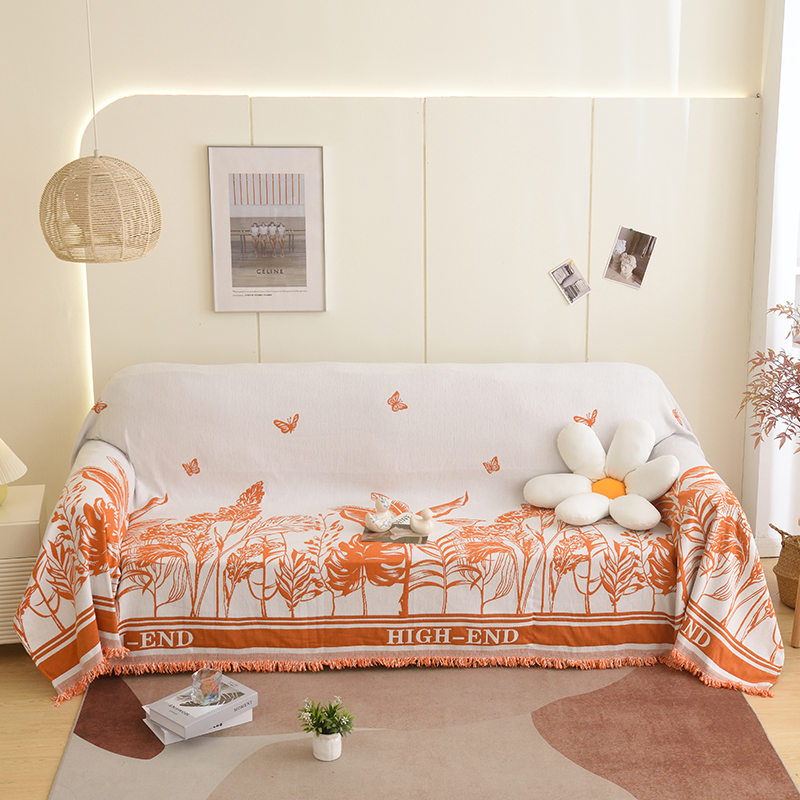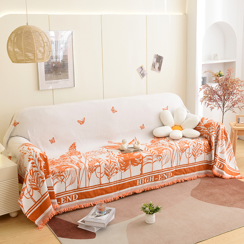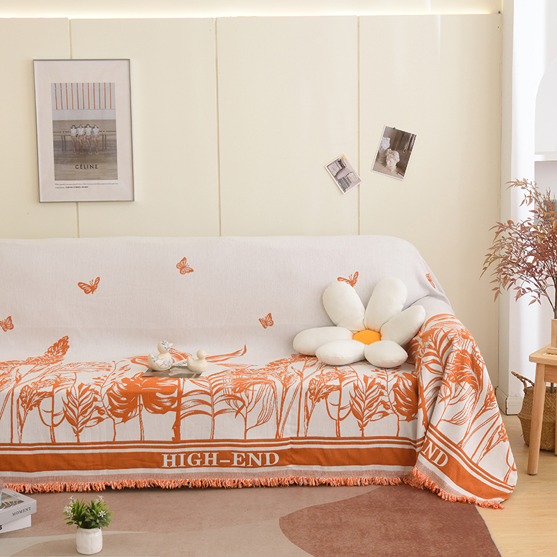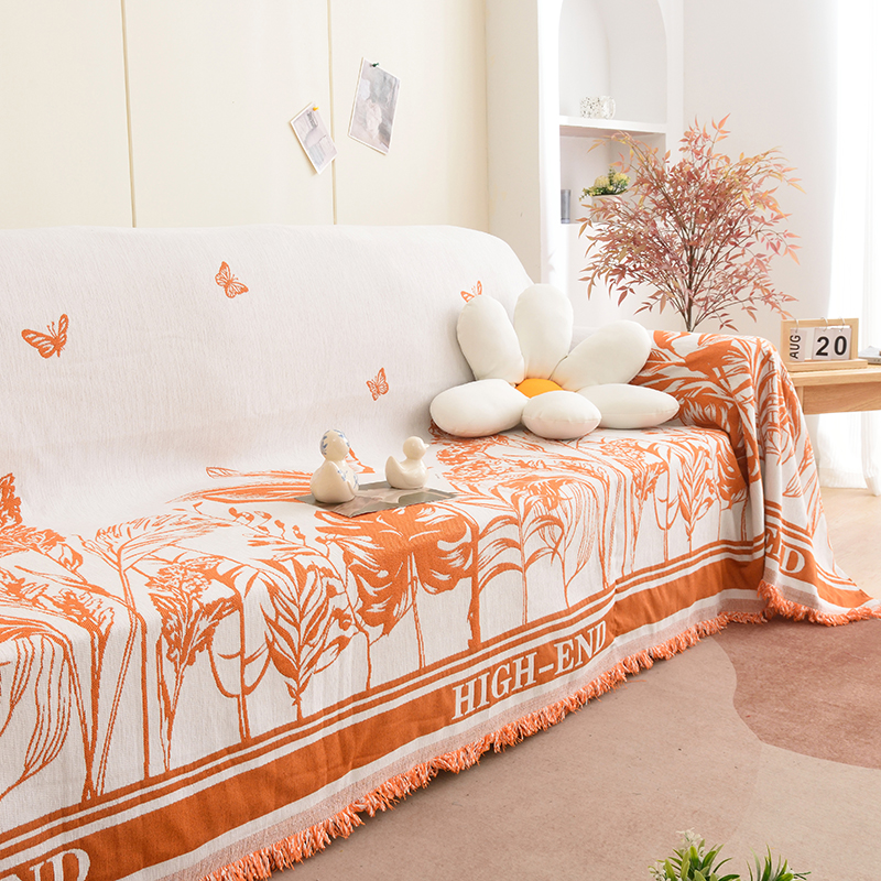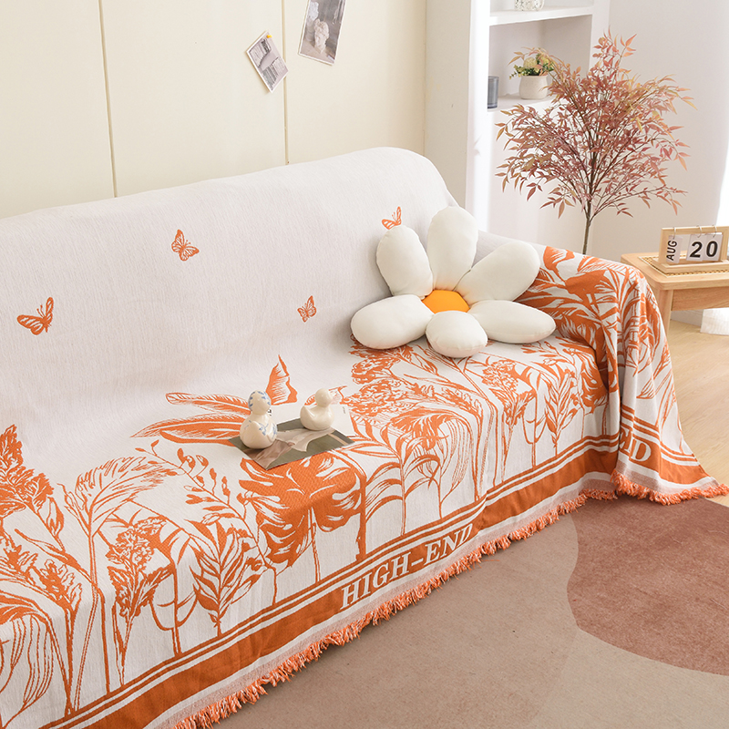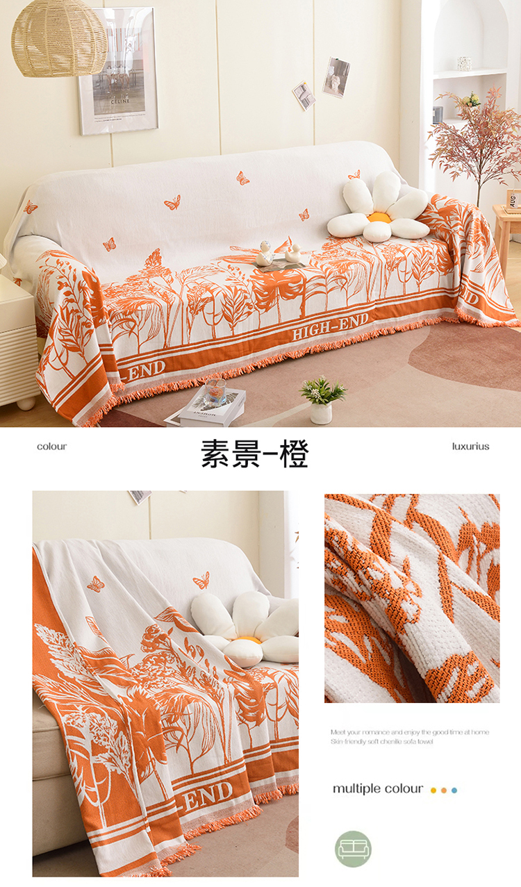 当前位置: 91家纺网 > 商品网购 > 居家布艺 > 坐垫/椅垫/沙发垫 > 沙发垫 > 启博家纺 2023新款雪尼尔流苏款沙发垫沙发套沙发巾 素景-橙