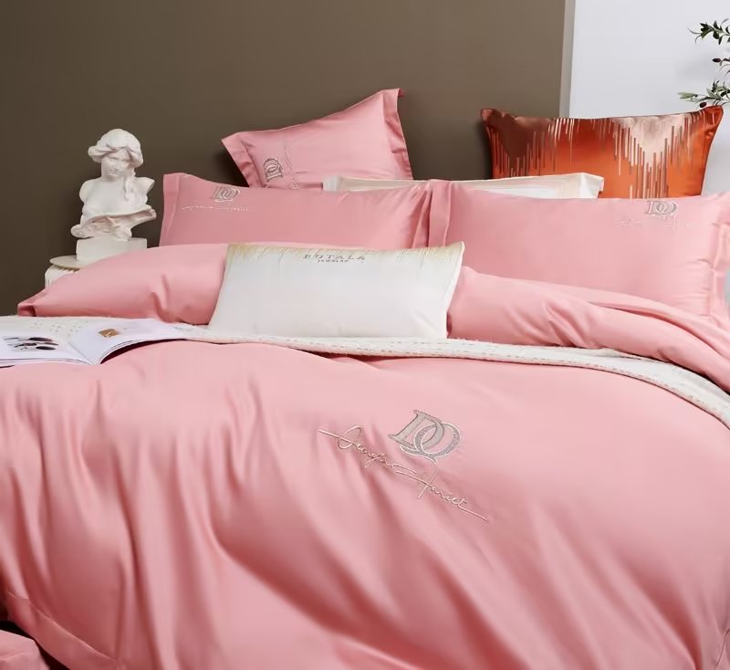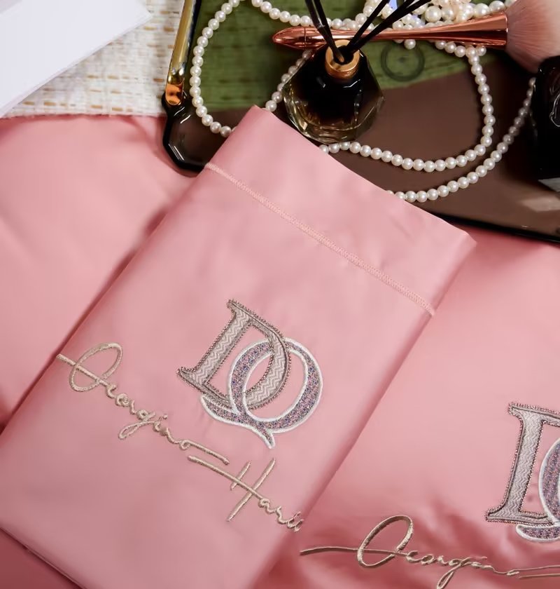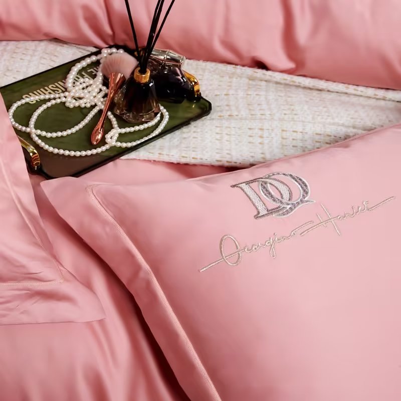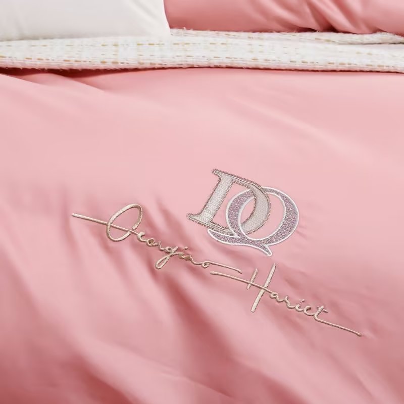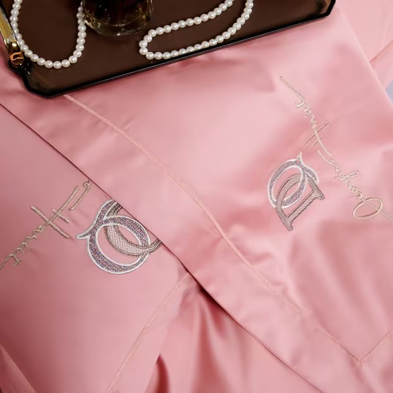 U品汇 2023新品100支60s长绒棉宽边刺绣花纯棉全棉四件套直播 凯伦-雅黛粉
