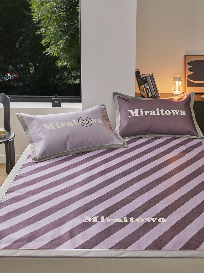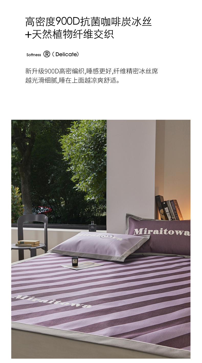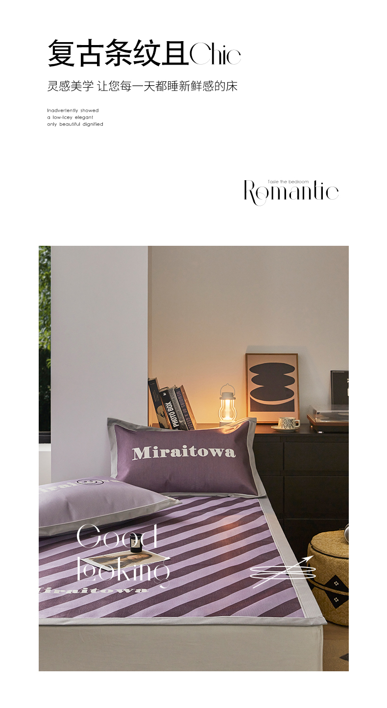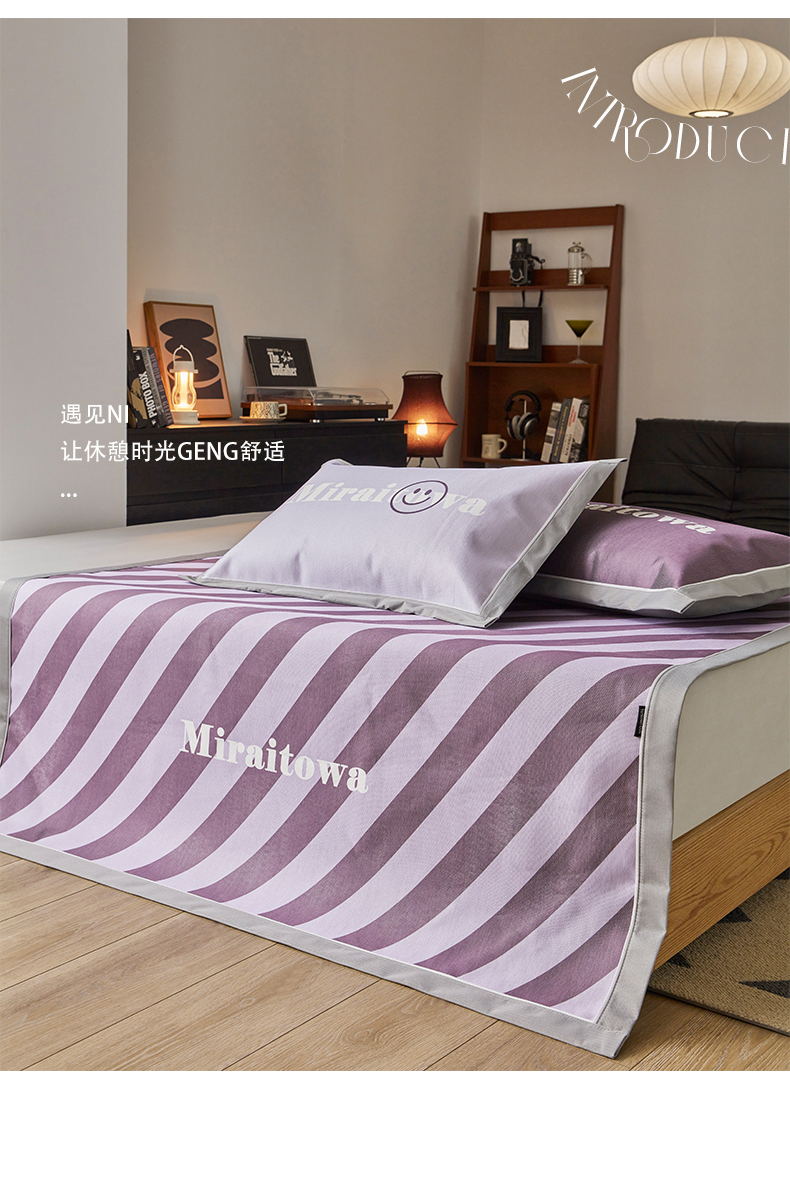 圆岛家纺 2023夏季A类复古条纹系列高档900D数码印花冰丝凉席 黑加仑紫