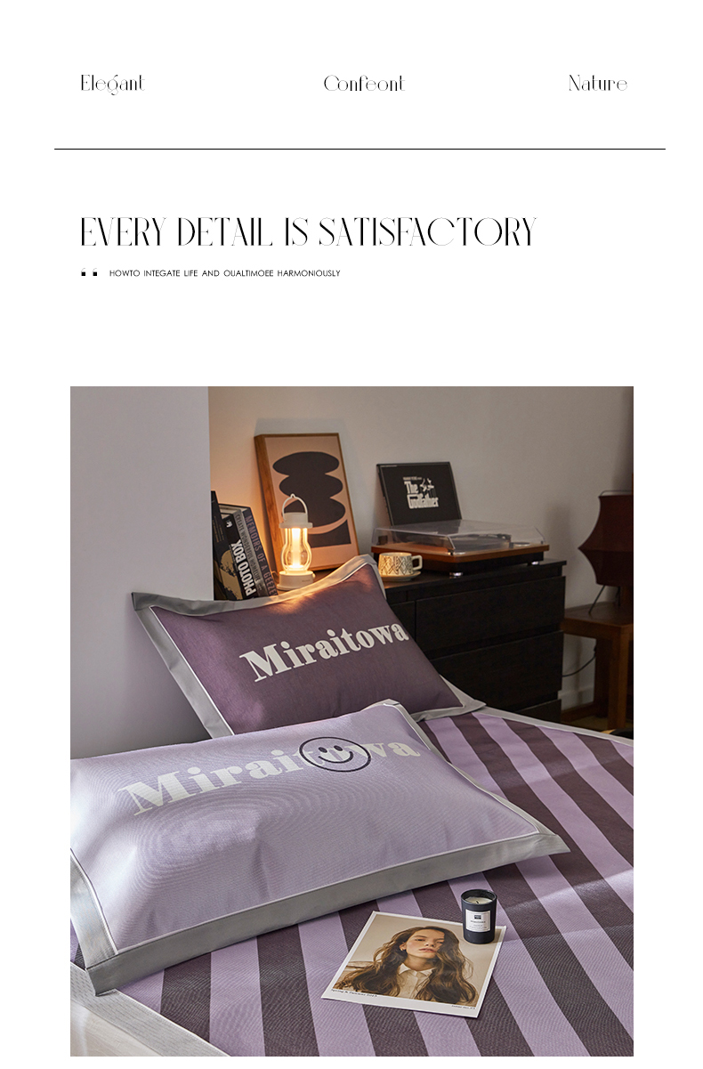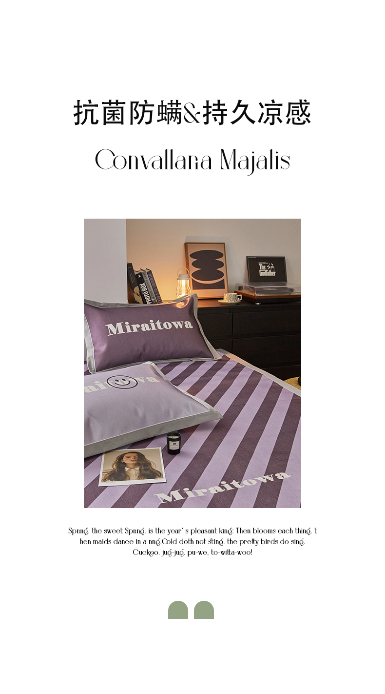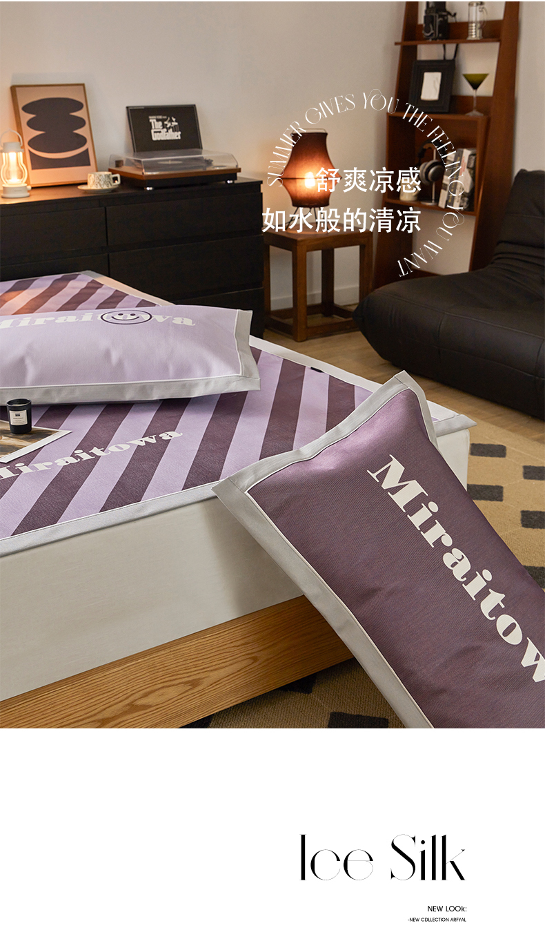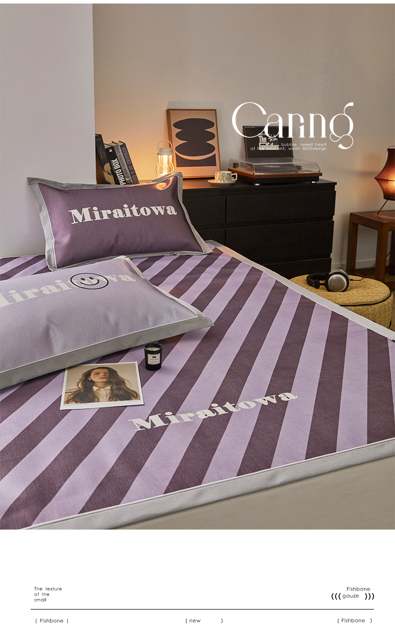 圆岛家纺 2023夏季A类复古条纹系列高档900D数码印花冰丝凉席 黑加仑紫