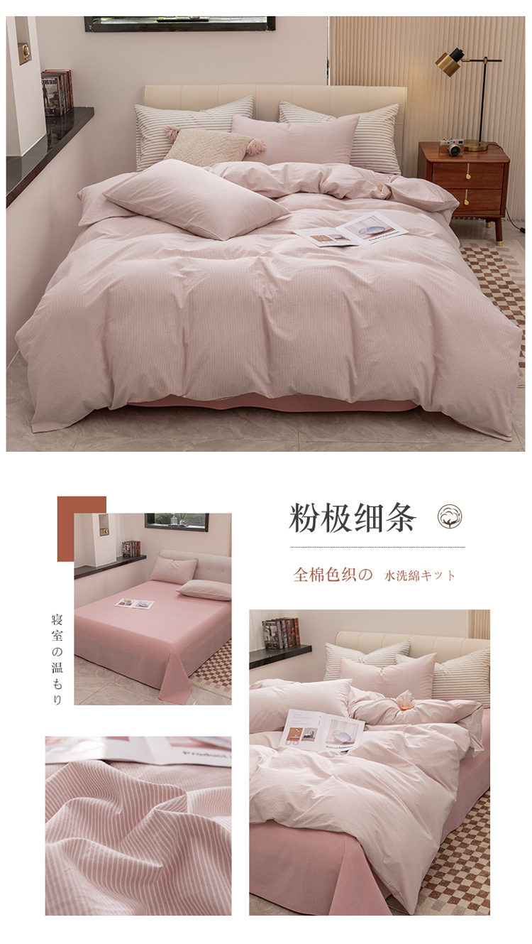 当前位置: 91家纺网 > 商品网购 > 床品套件 > 四件套 > 色织四件套 > (总)柠萌家居2023新款无印良品风全棉色织水洗棉条纹四件套