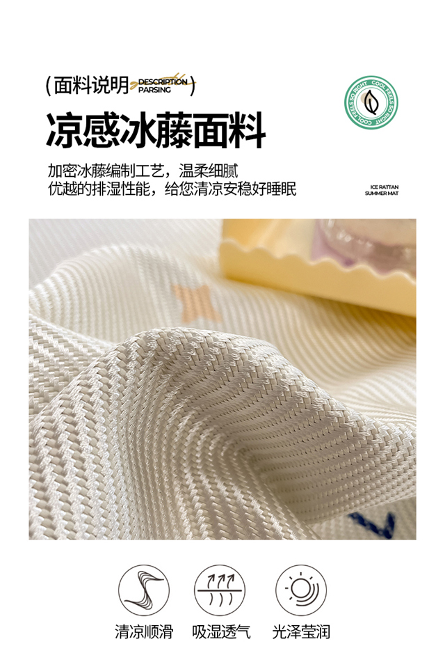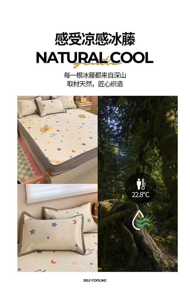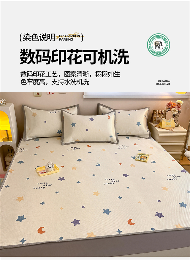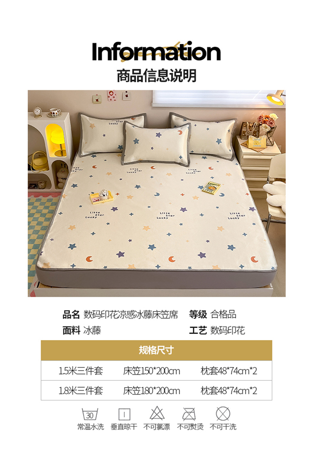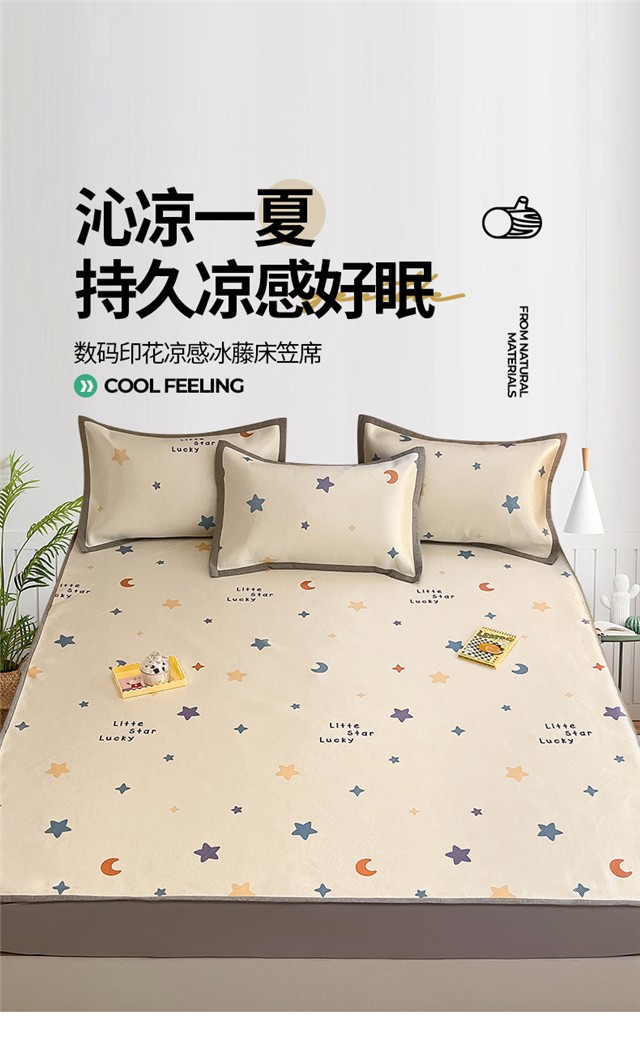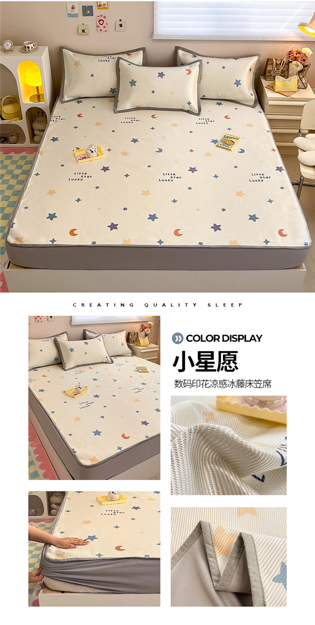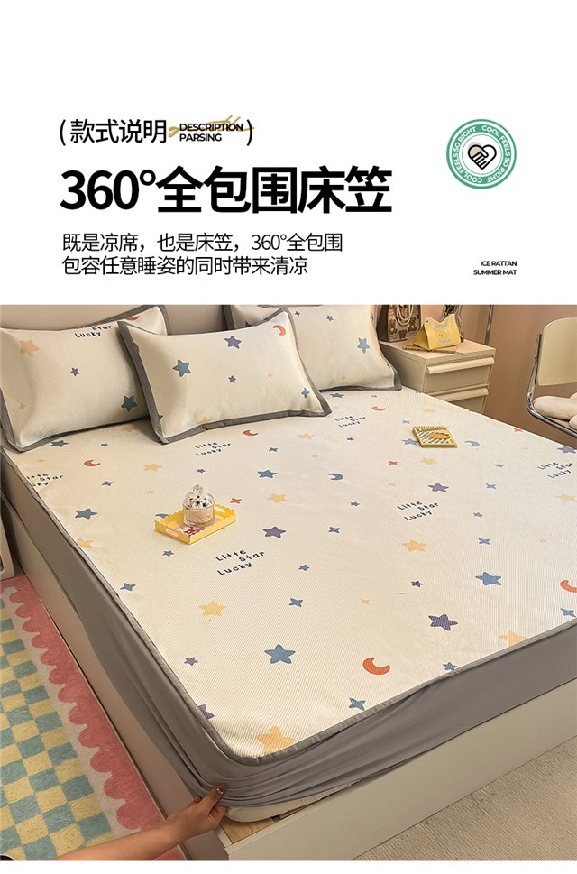 商品名称:懒猫 2024新款600D冰藤床笠款凉席 小星愿-床笠款