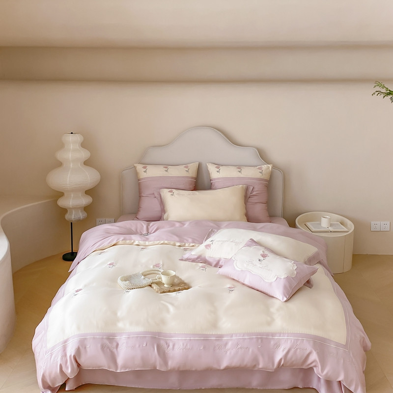 (总)鹿班家居 2025新款秋冬款100S全棉磨毛精密刺绣系列四件套-温柔浅梦(标准会员-20元),温柔浅梦-紫色,温柔浅梦-粉色