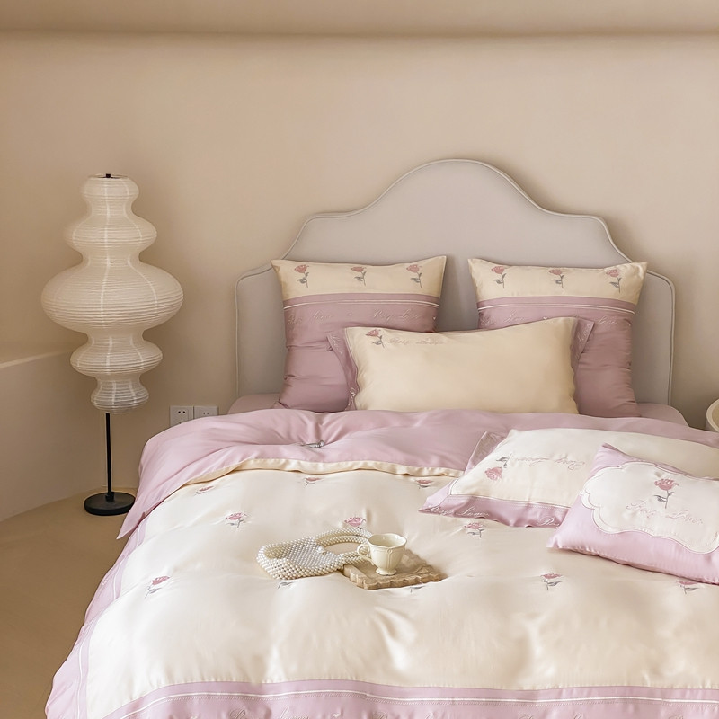 鹿班家居2023新款小法玫瑰系列60支莱赛尔四件套(标准会员-20) 小法玫瑰-嫩桃粉