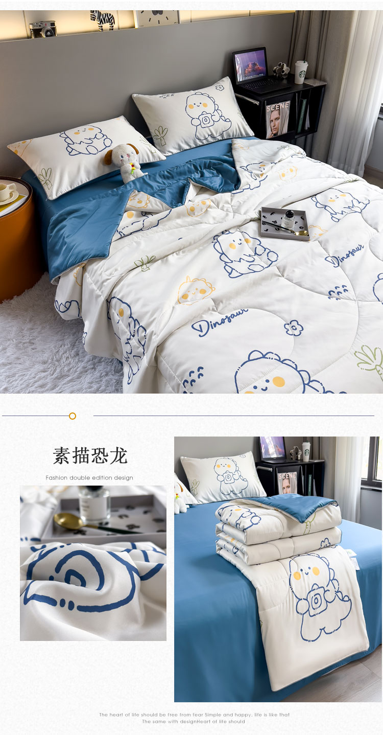 商品名称:梦舒羽 2025新款夏凉被空调被可机洗儿童被夏季双人夏被四件套 素描恐龙