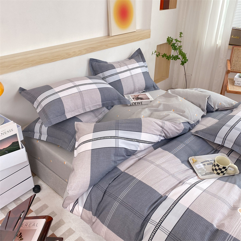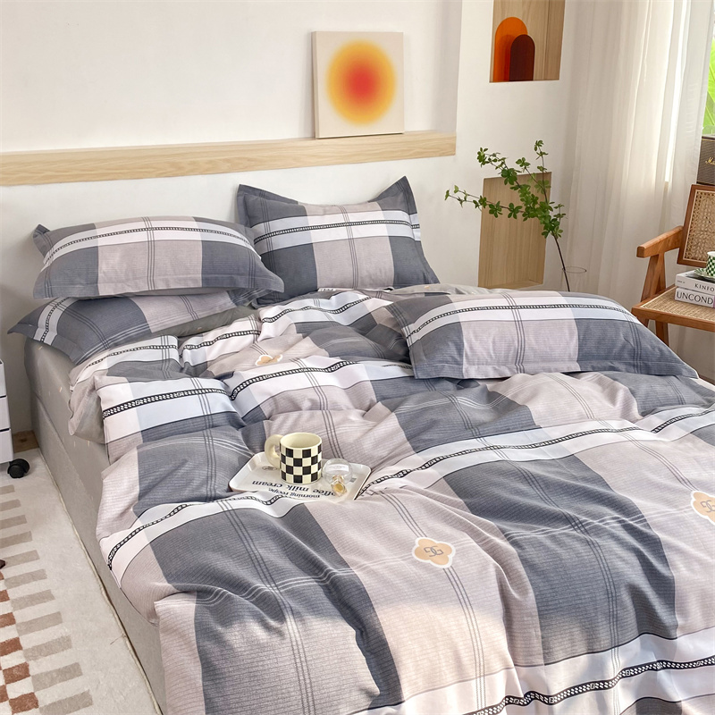 (总)多品家纺 2025新款简约复古风水洗棉格子四件套,黑小格+黑,柏林+黑,柏林+黑小格,黑小格+杏黄,时光+黑,时光+黑白格
