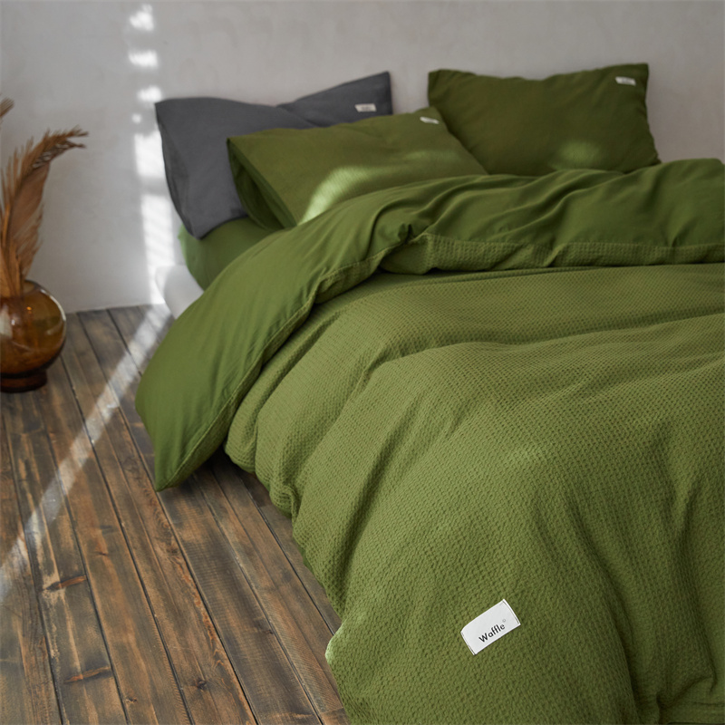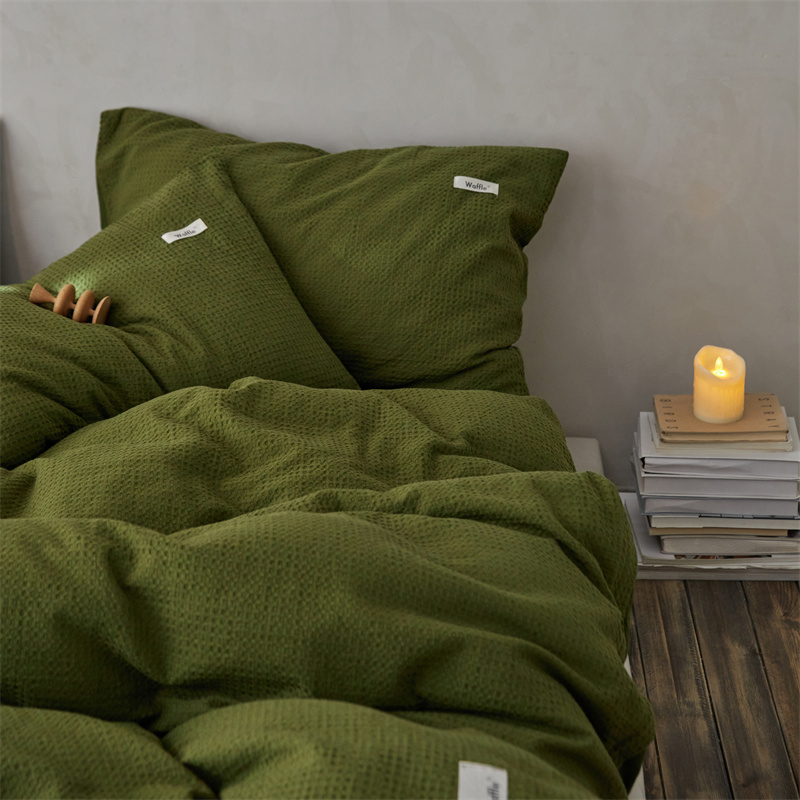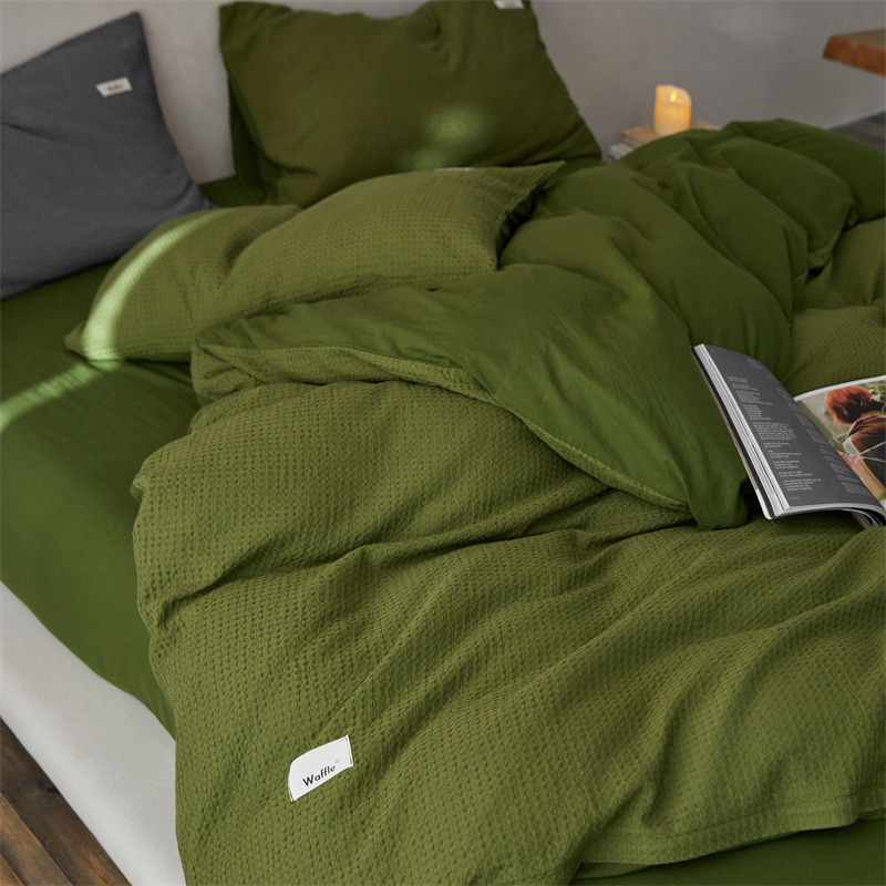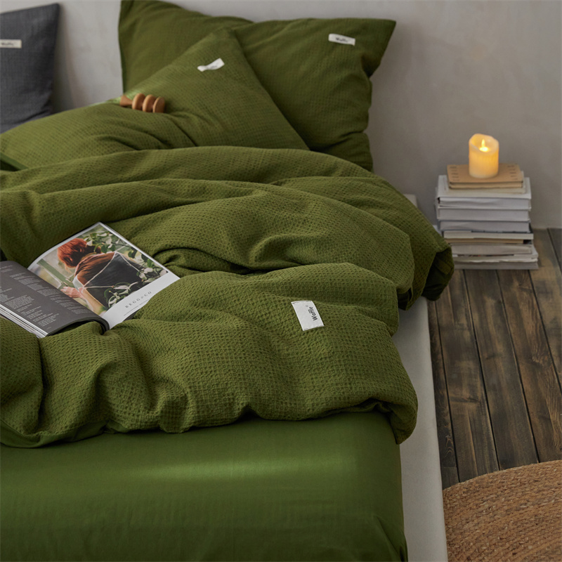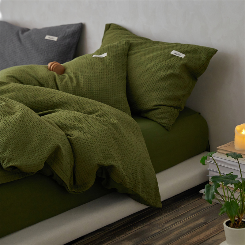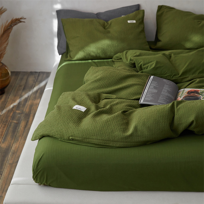 当前位置: 91家纺网 > 商品网购 > 床品套件 > 四件套 > 色织四件套 > 安莱生活 2023新款A类水洗色织纯色华夫格四件套 微小华夫格-军绿
