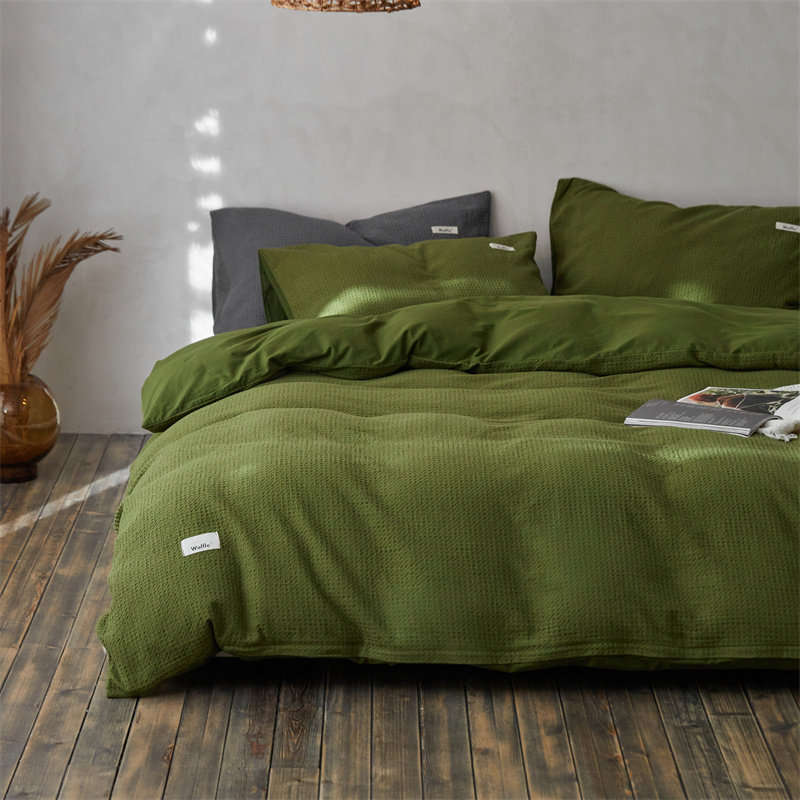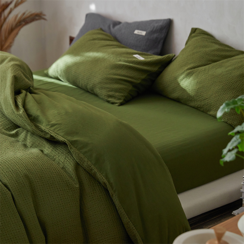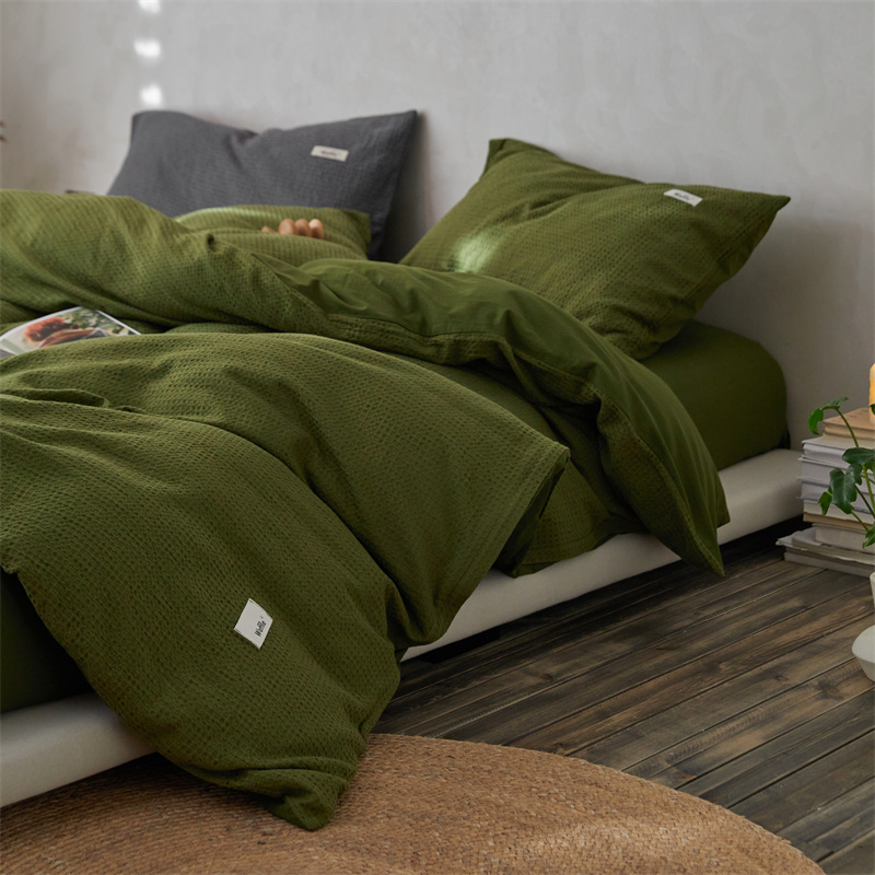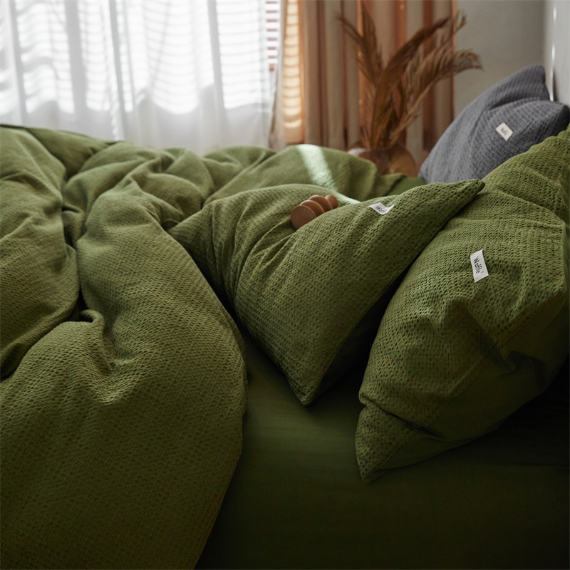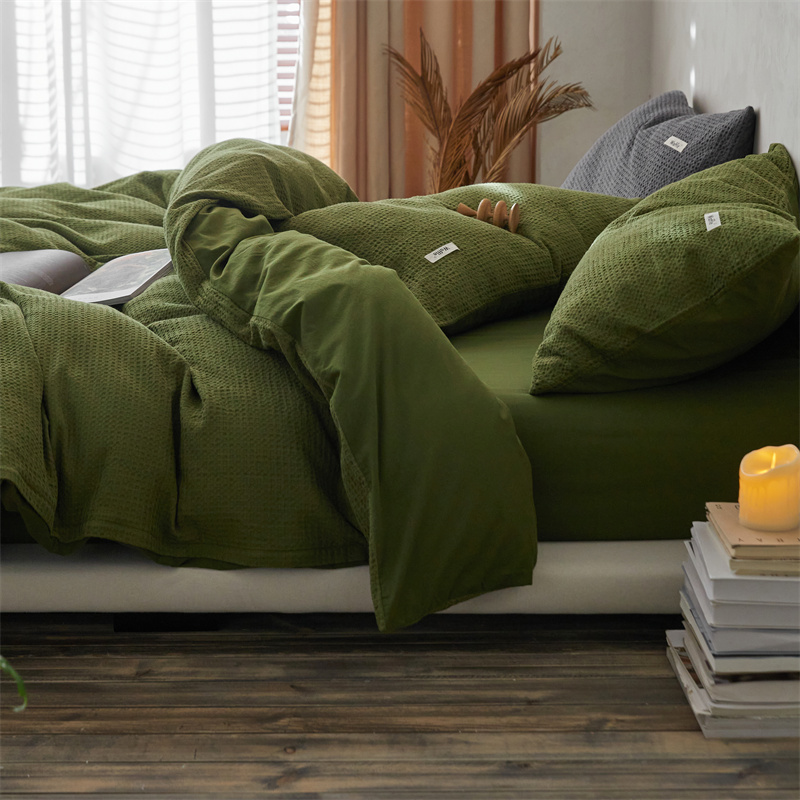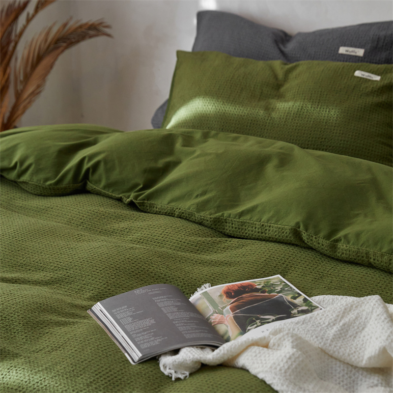 当前位置: 91家纺网 > 商品网购 > 床品套件 > 四件套 > 色织四件套 > 安莱生活 2023新款A类水洗色织纯色华夫格四件套 微小华夫格-军绿