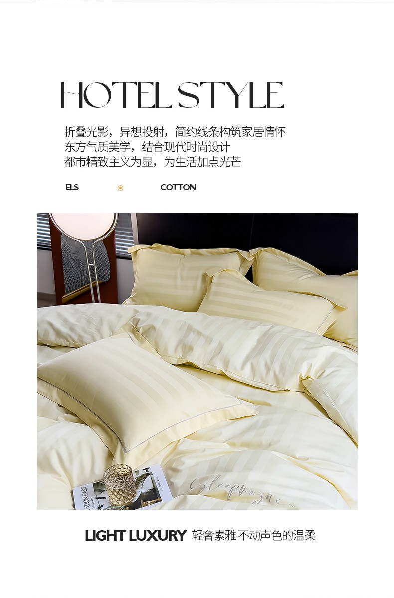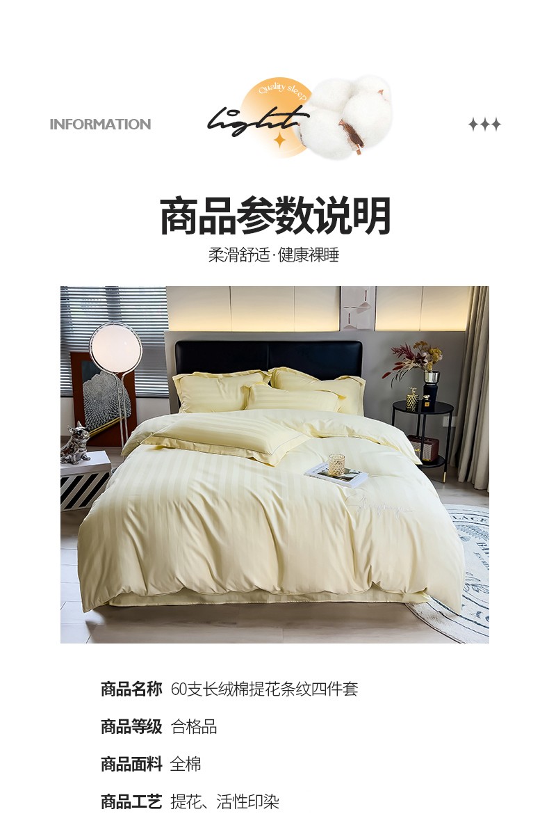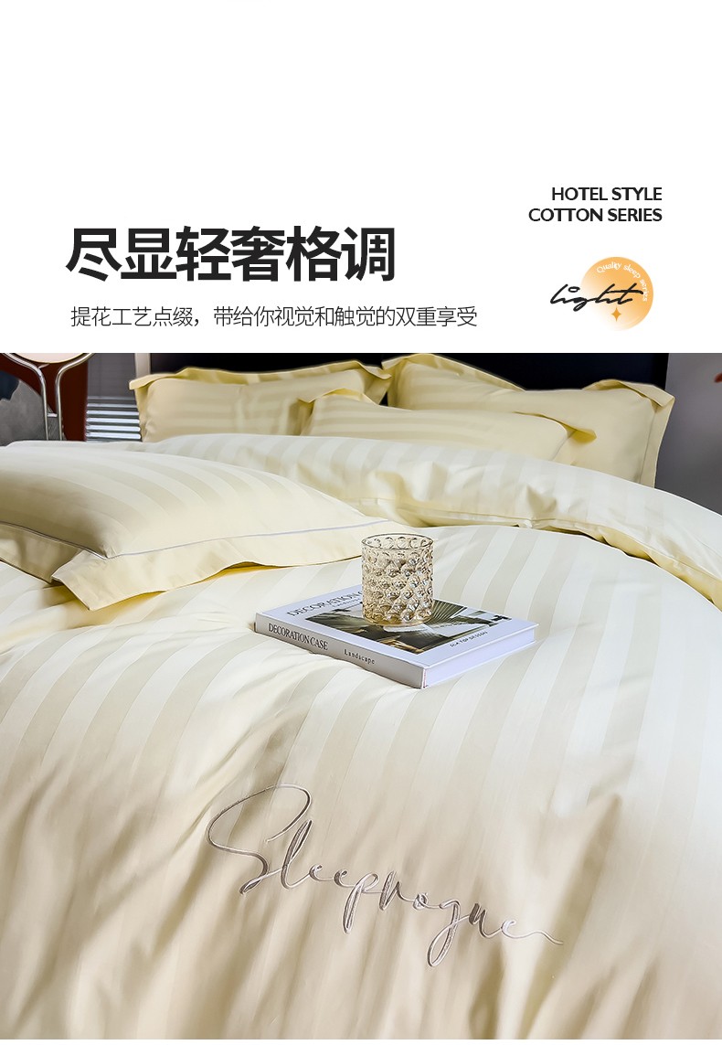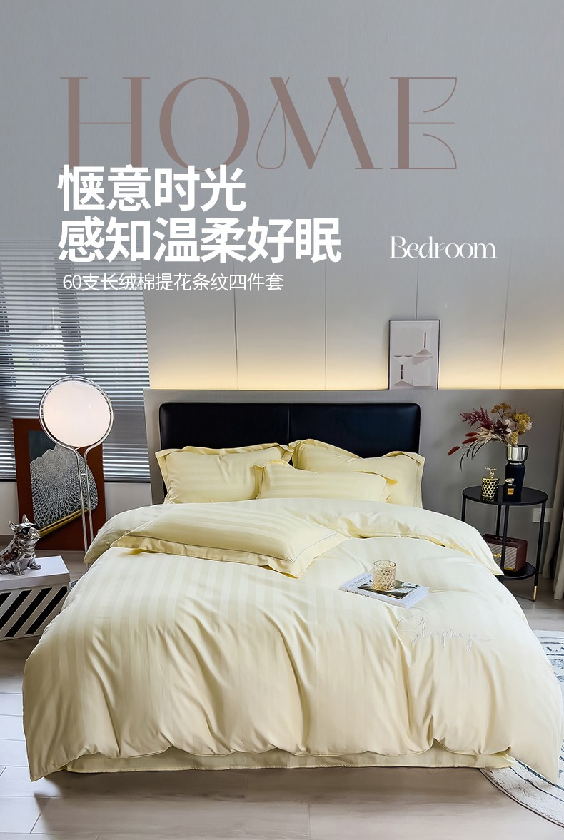 当前位置: 91家纺网 > 商品网购 > 床品套件 > 四件套 > 长绒棉四件套 > 慕尚 2025新款60支长绒棉提花条纹系列四件套 条纹米黄